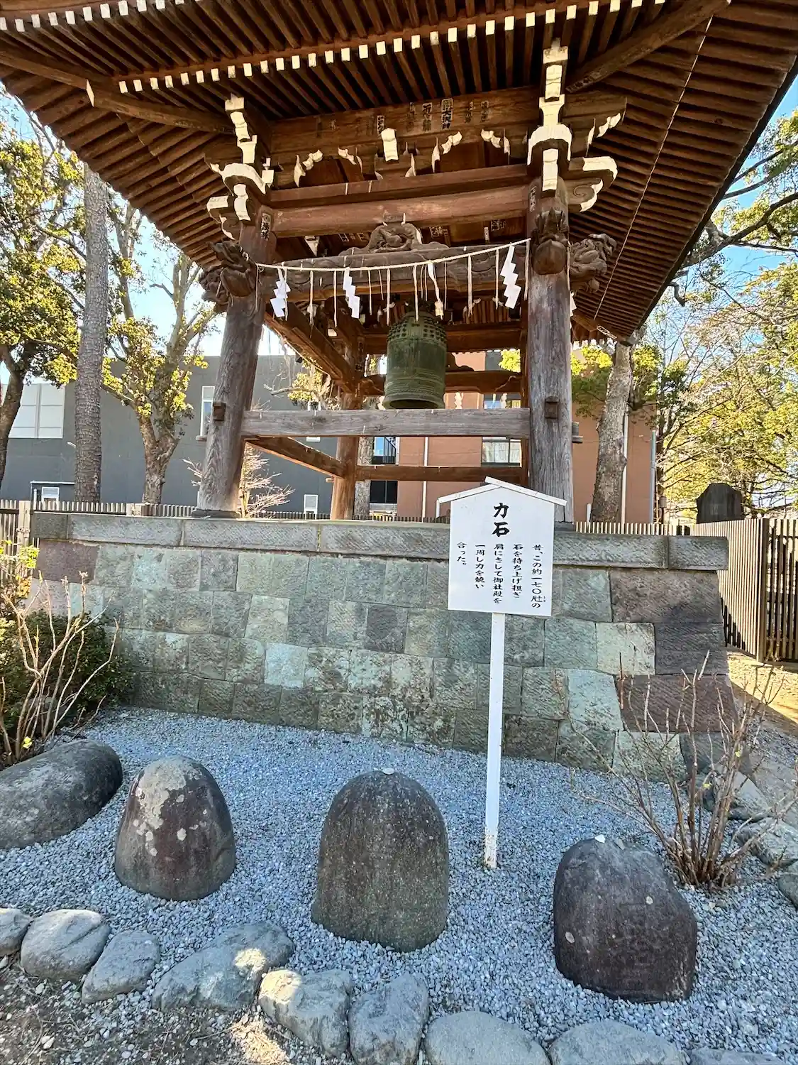 梵鐘。神社なのに、鐘!発掘されたものだそうですが、神仏習合の面影が伺えます。