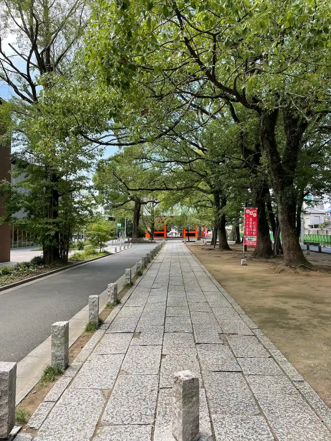 参道 両脇は一方通行の道路になっています