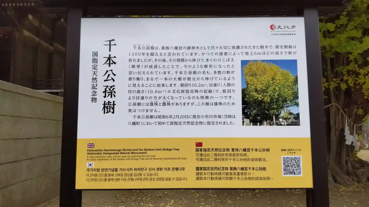 巨大なイチョウの木が見応えあります。