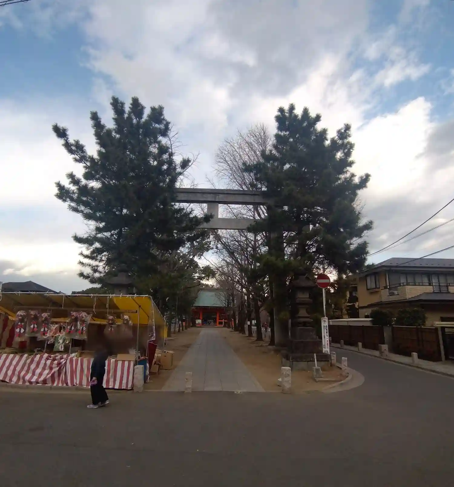 表参道から鳥居を臨む(背後は京成本線の踏切)