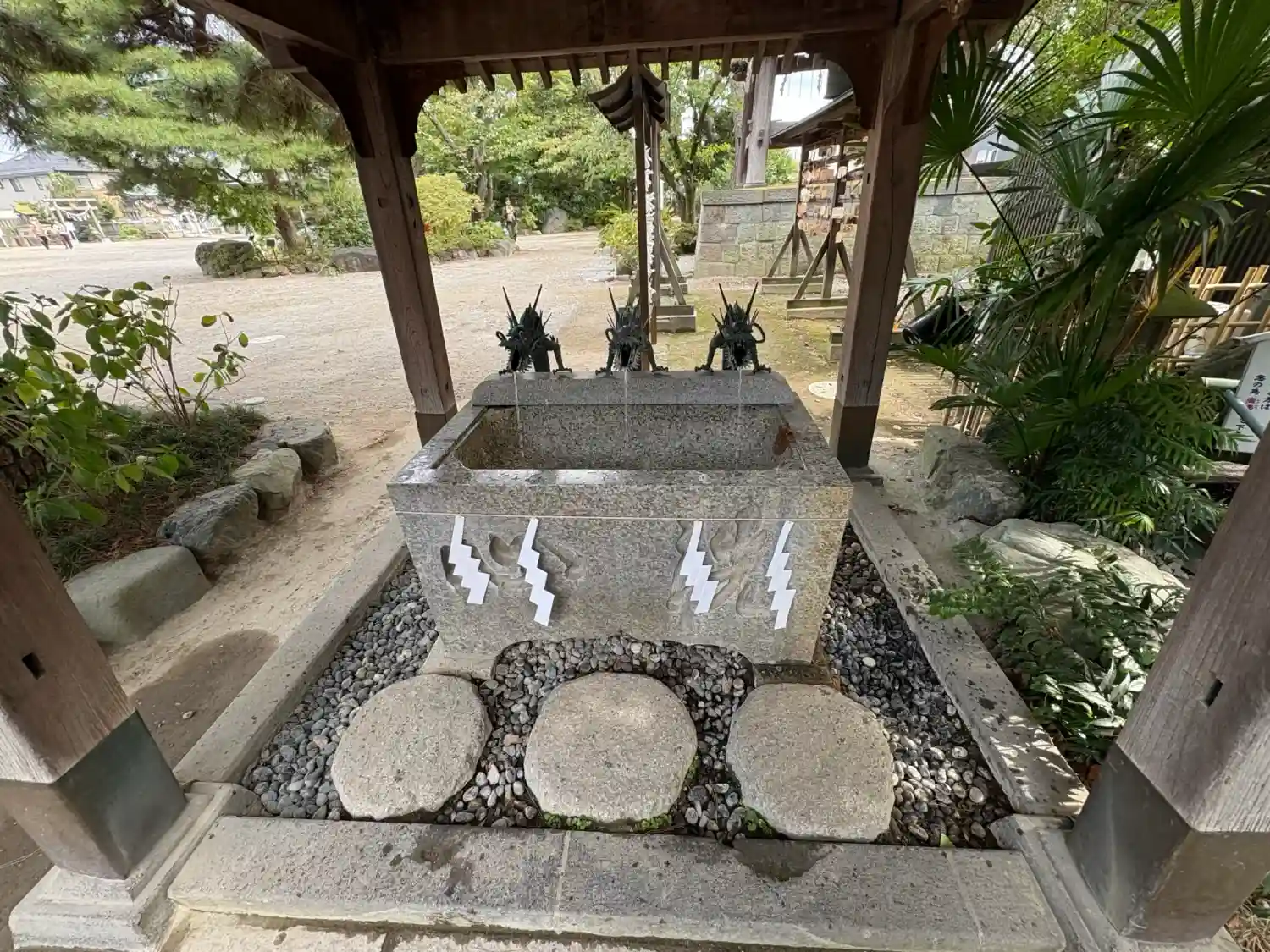 手水舎には龍神様の頭が三つ🐲🐲🐲