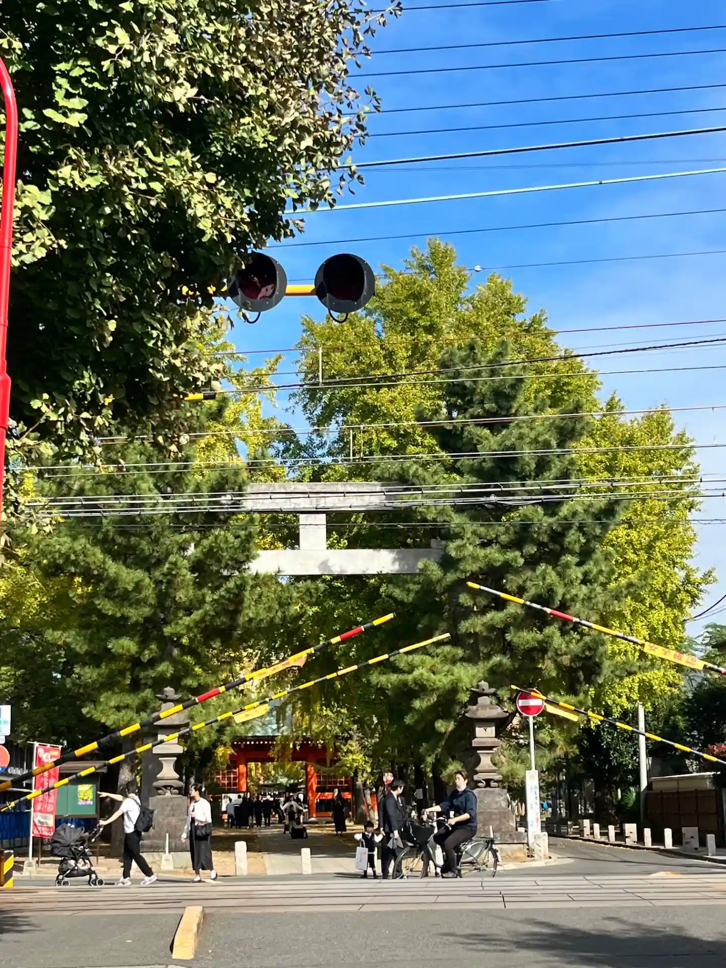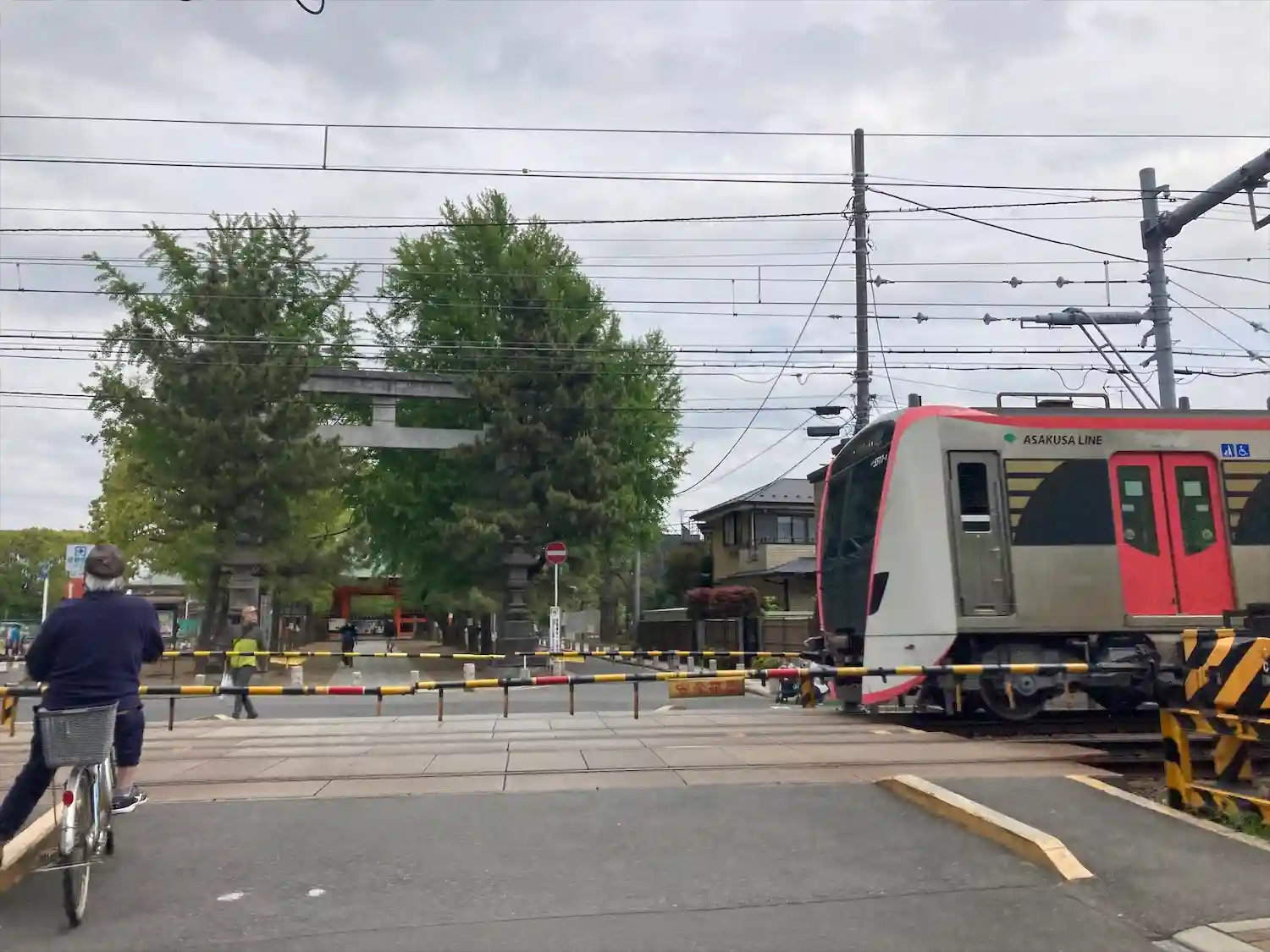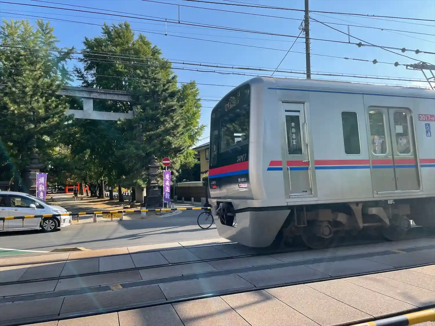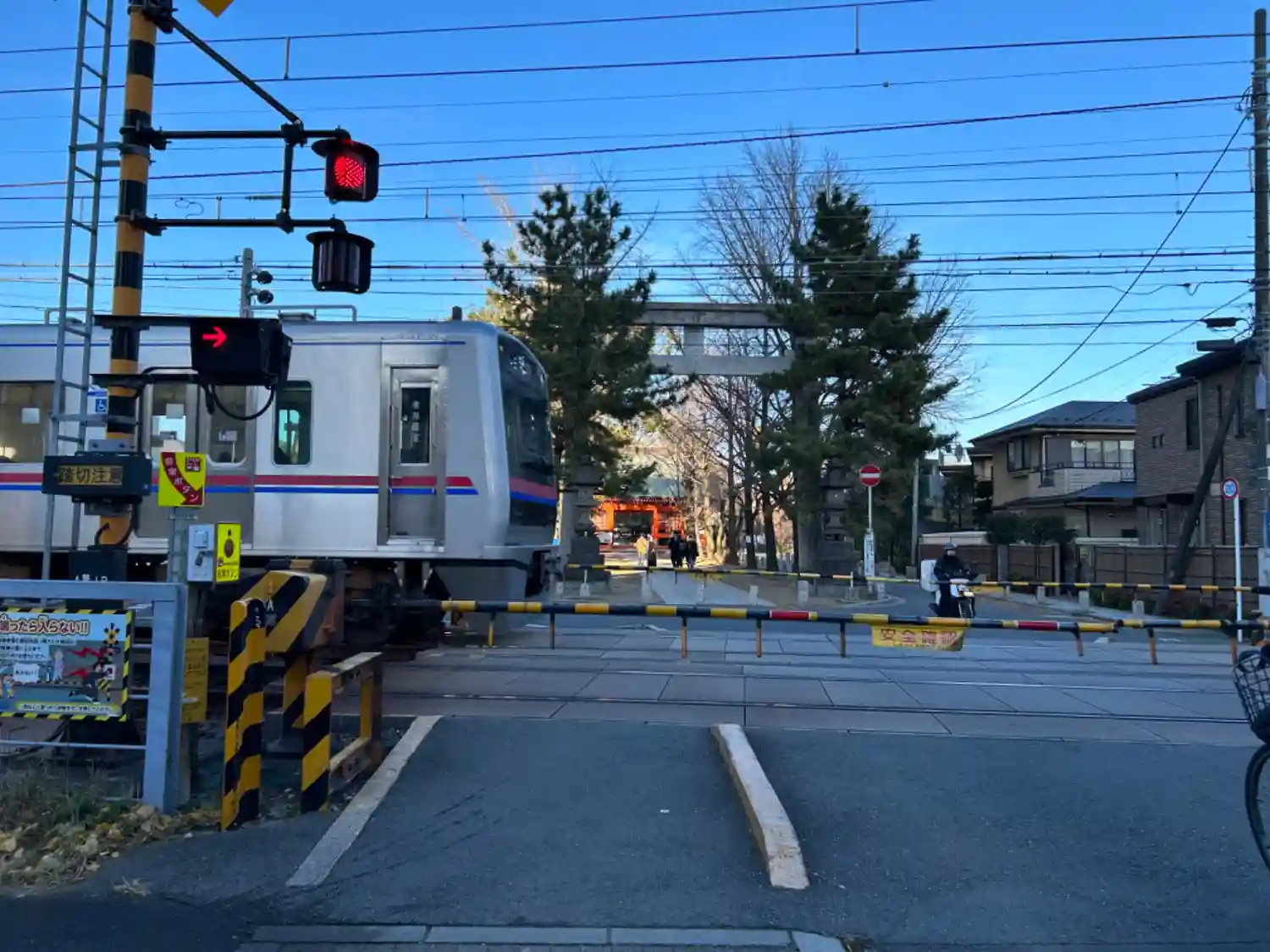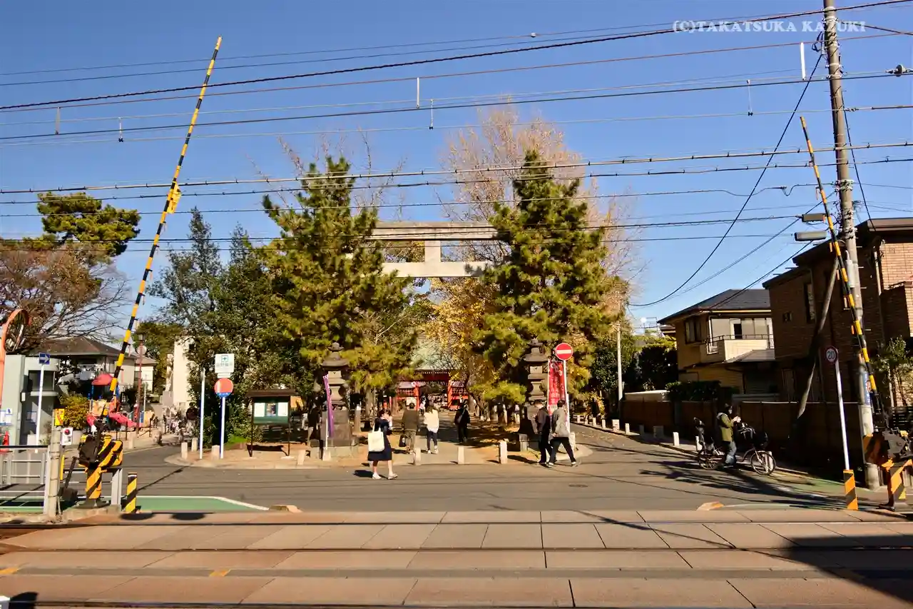 京成線が参道を横切っています。