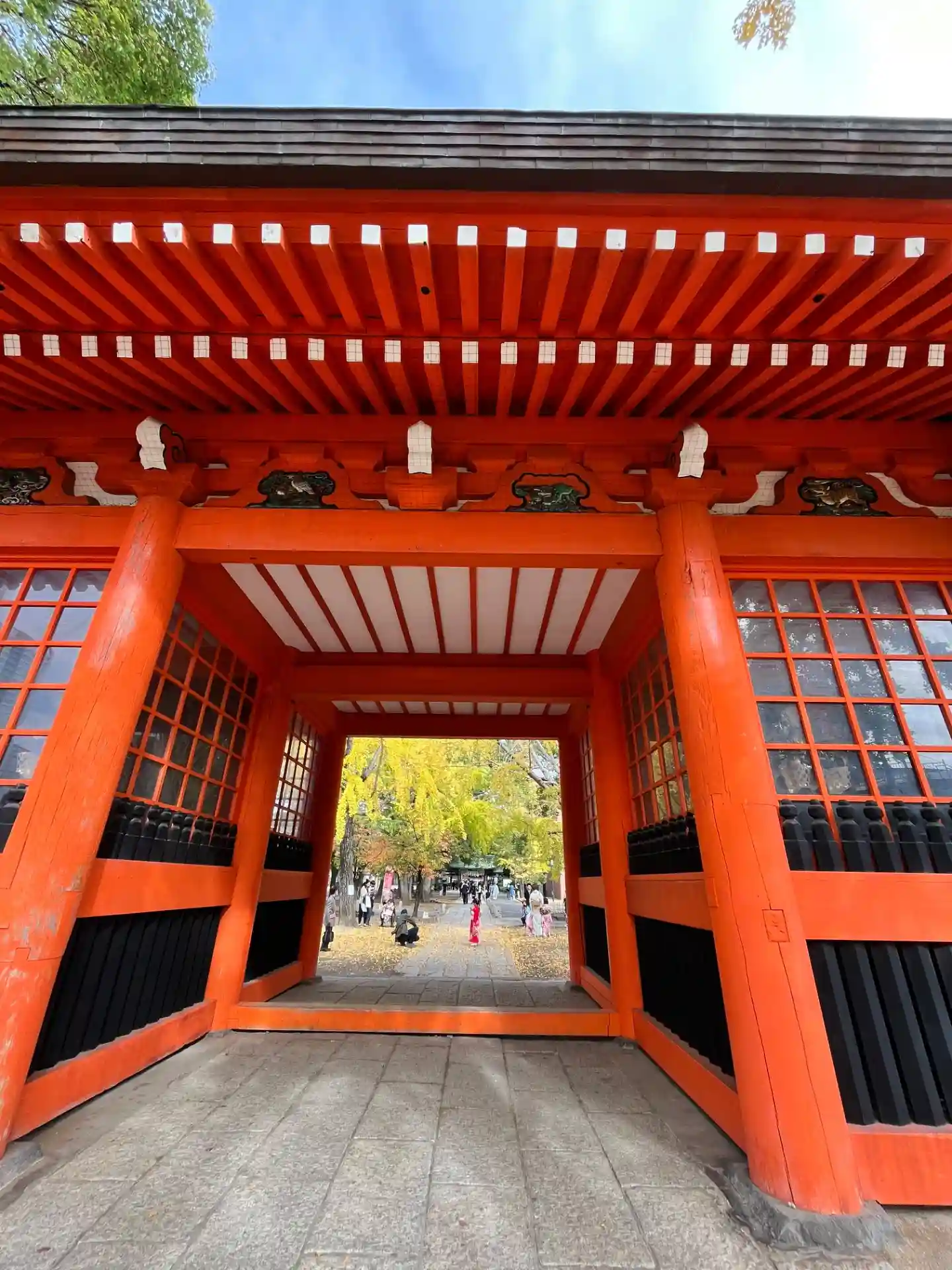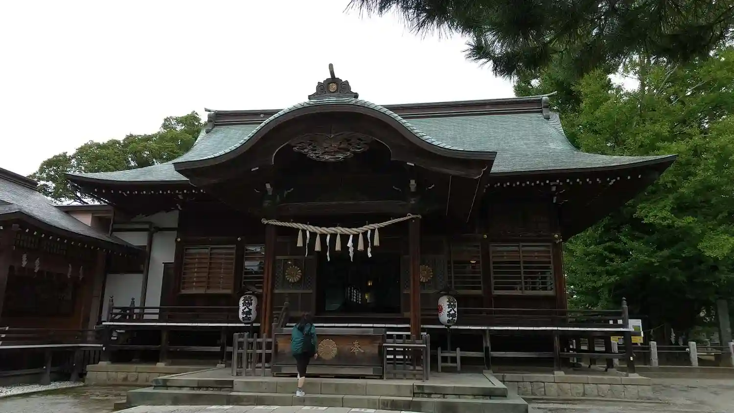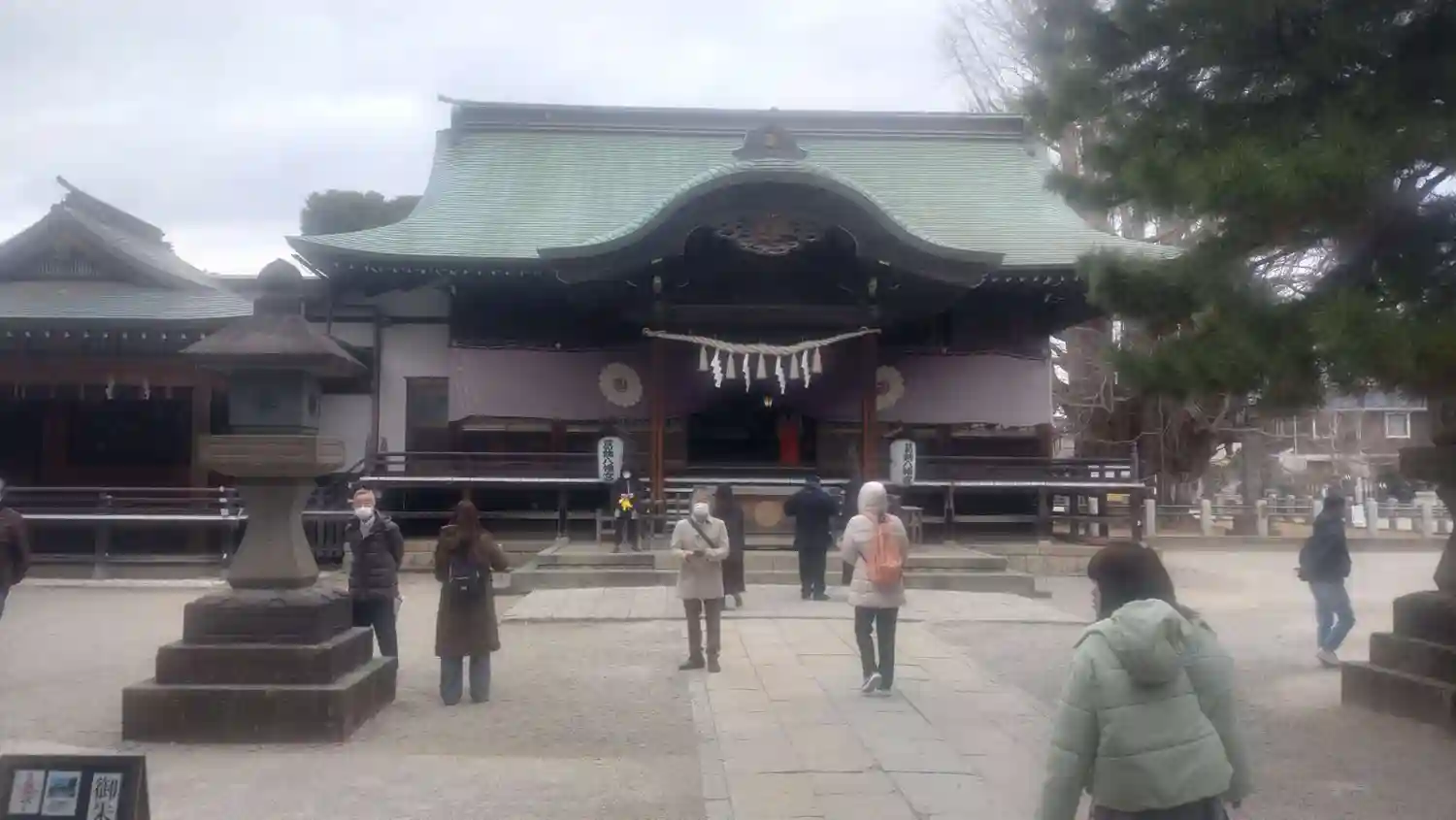 参拝客が次々と御社殿に向かいますので遠くから一枚😊