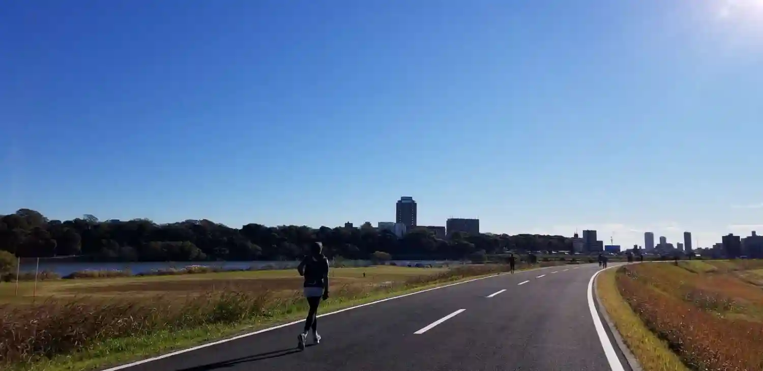 江戸川土手にぶつかります。