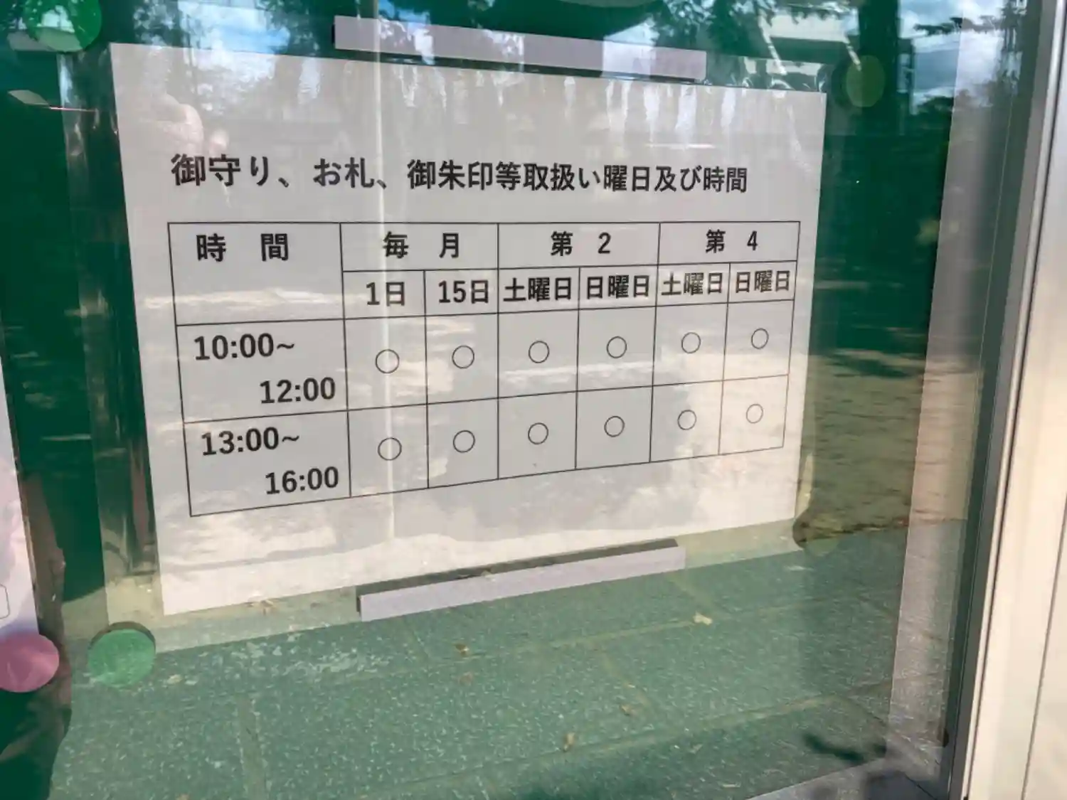 御朱印、授与品は、毎月1日、15日と第2土曜・日曜、第4土曜・日曜の10〜12時、13〜16時にご対応頂けるとのこと。