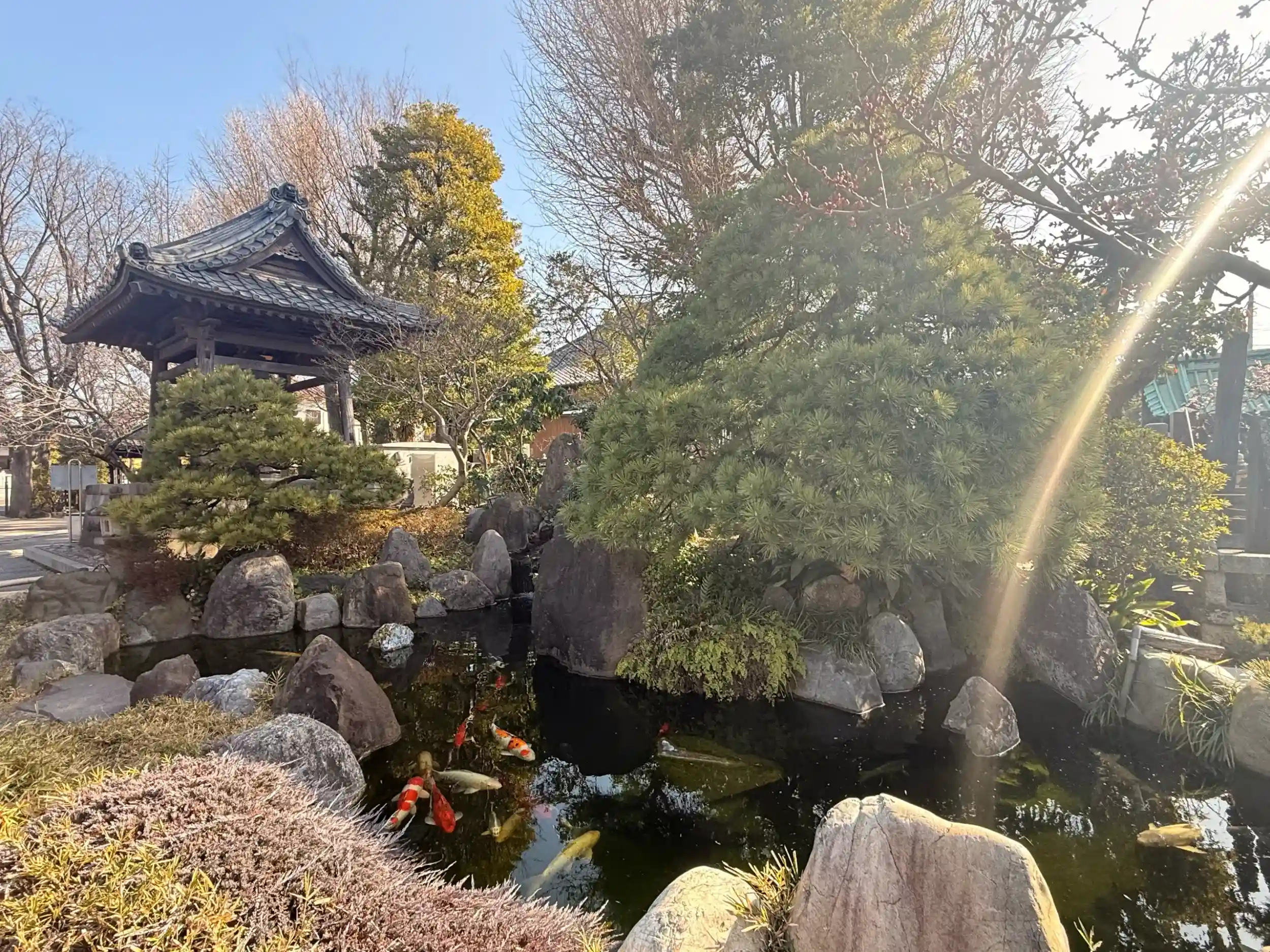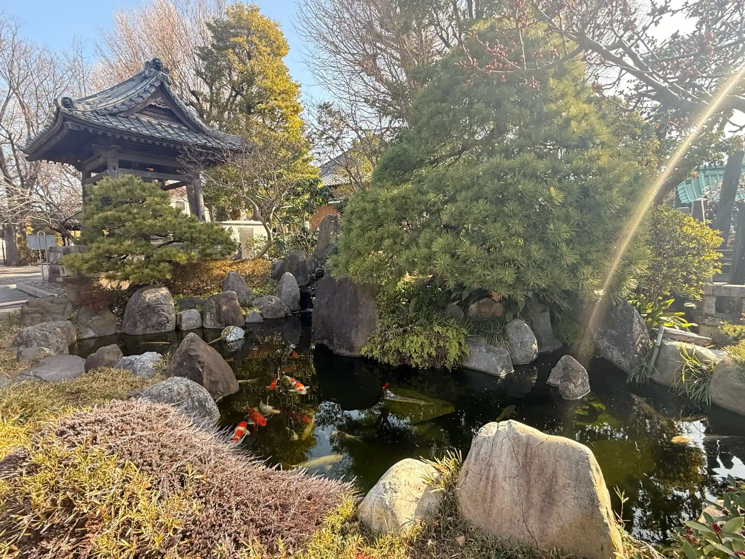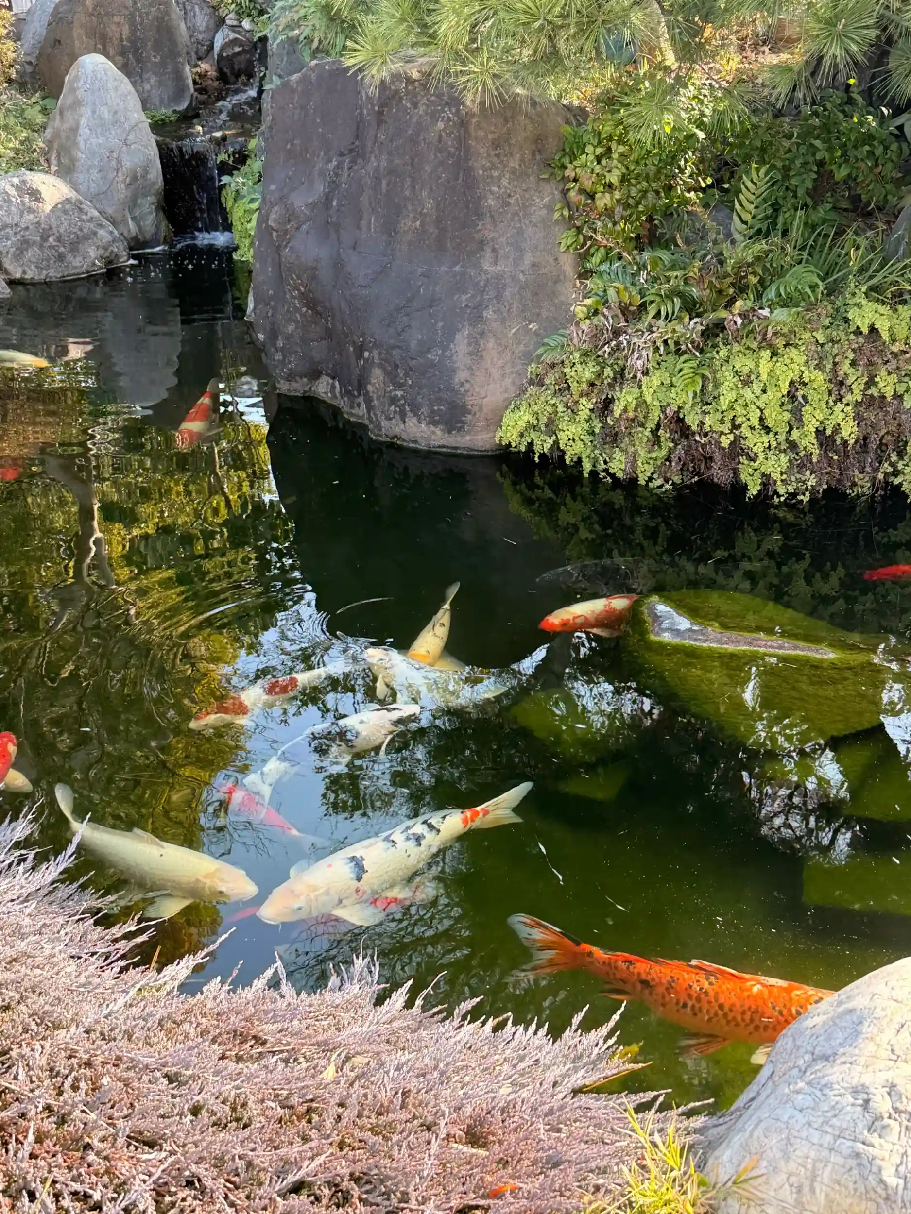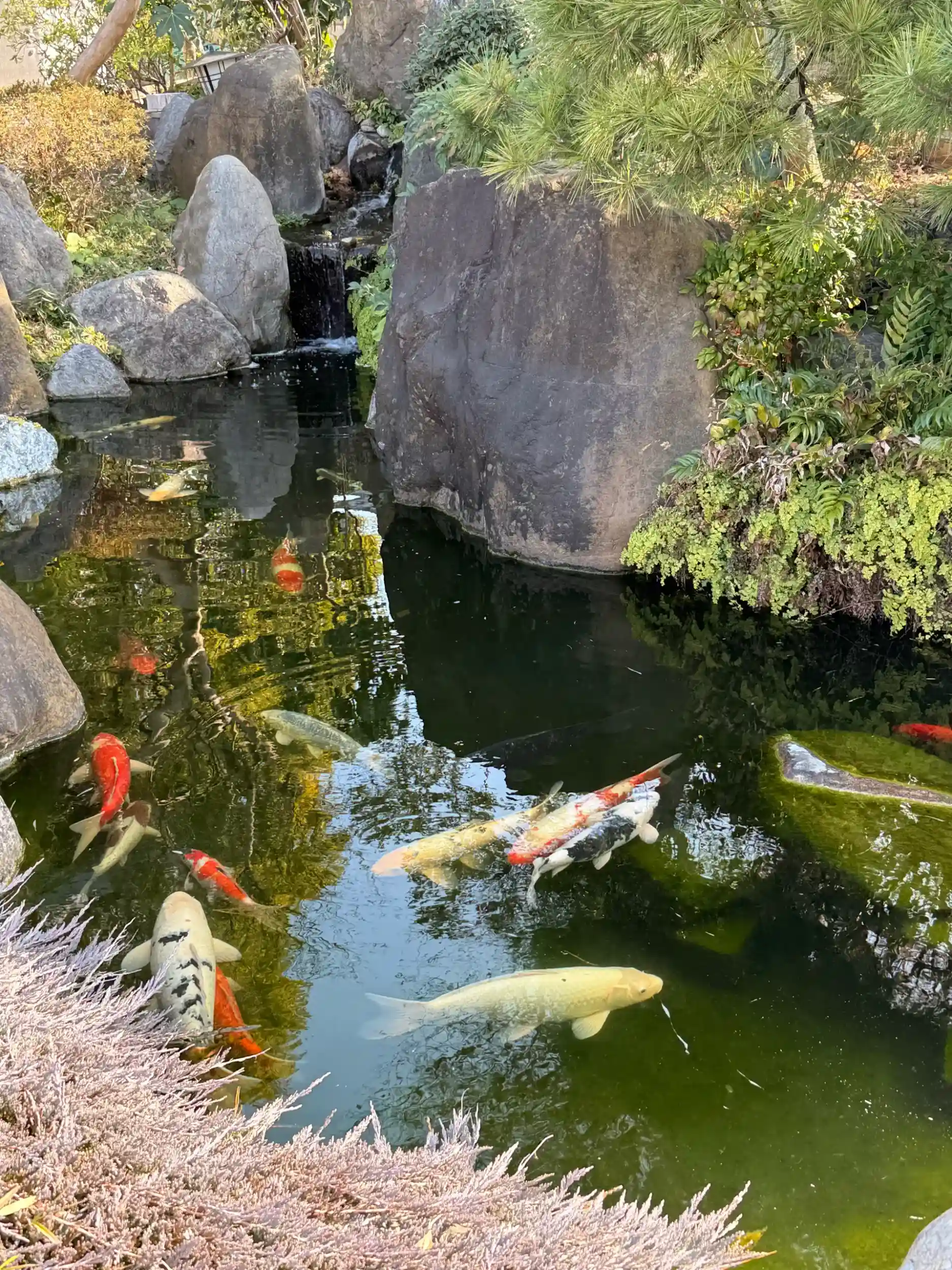 立派なお庭でとても大きい鯉さん達が元気に泳いでました。