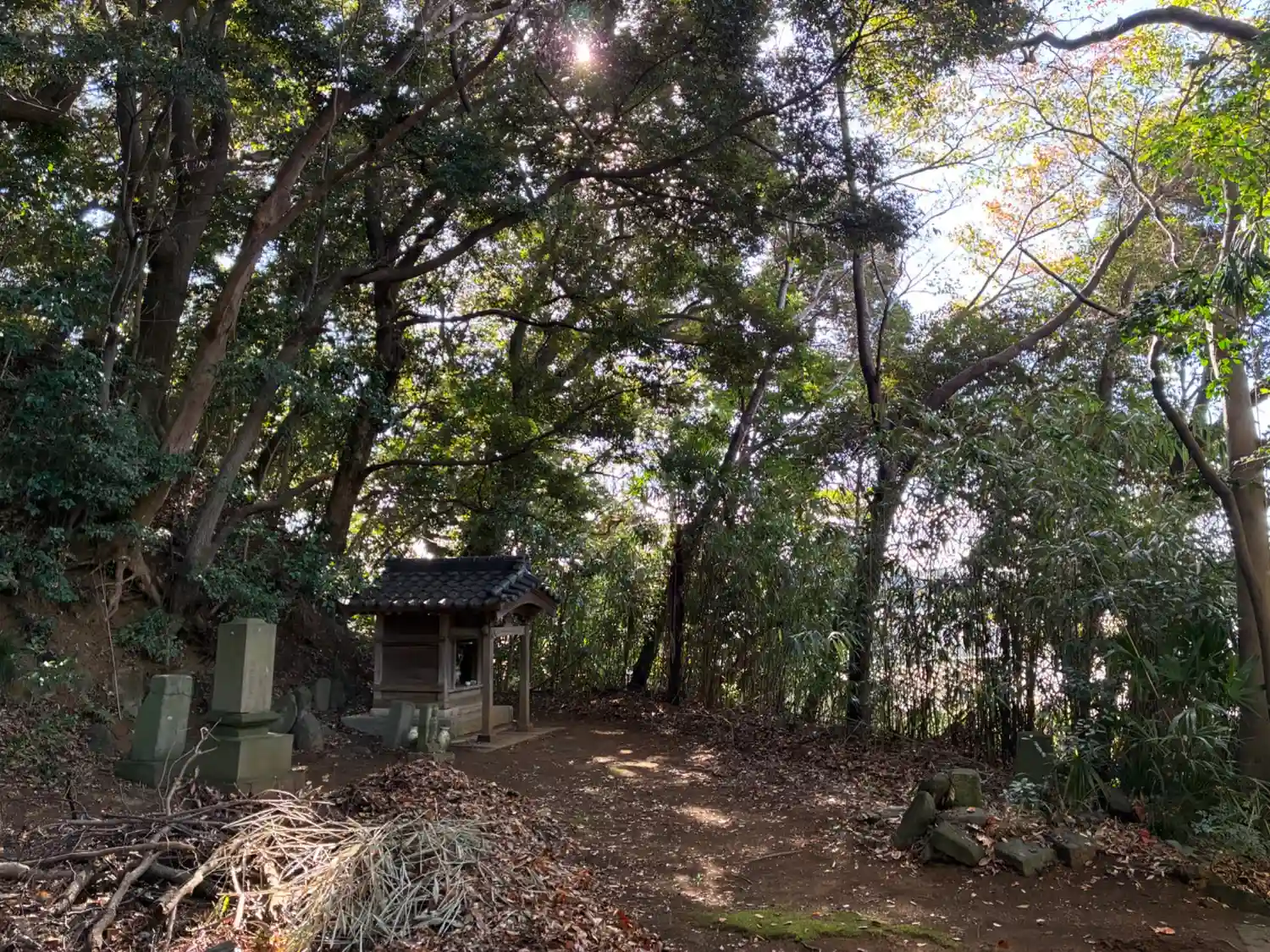 かなり急な石段を登った先にあります。登り降りするだけでしんどそうですが、頻繁に境内を掃き清めているようで気持ちよく参拝でしました。隣の一段下がったところには観音堂があります。こちらは倒木の影響か正面が崩れていました。