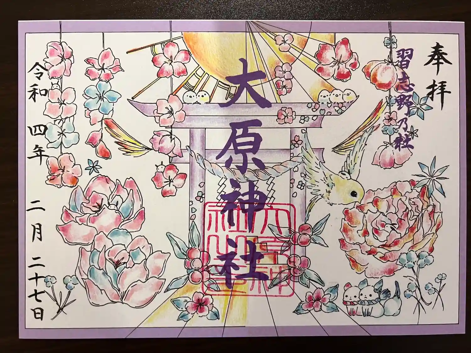 カラフルな御朱印の頒布していただける神社としても知られています。月替わりの御朱印は直書きしていただけます。神職の方の対応も丁寧で気持ち良いです。