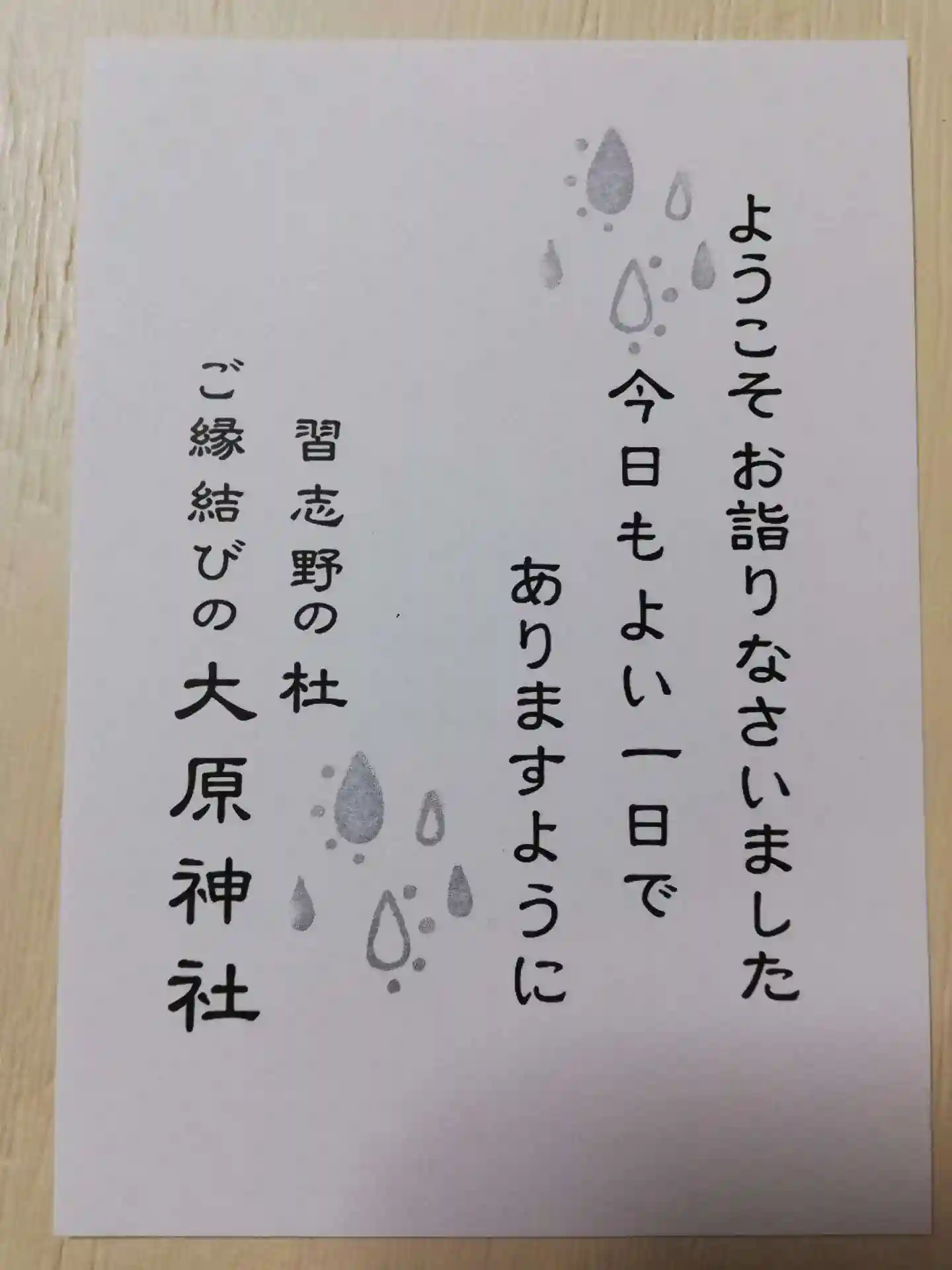 大原神社様は、雨の日の参拝には月替りの御…