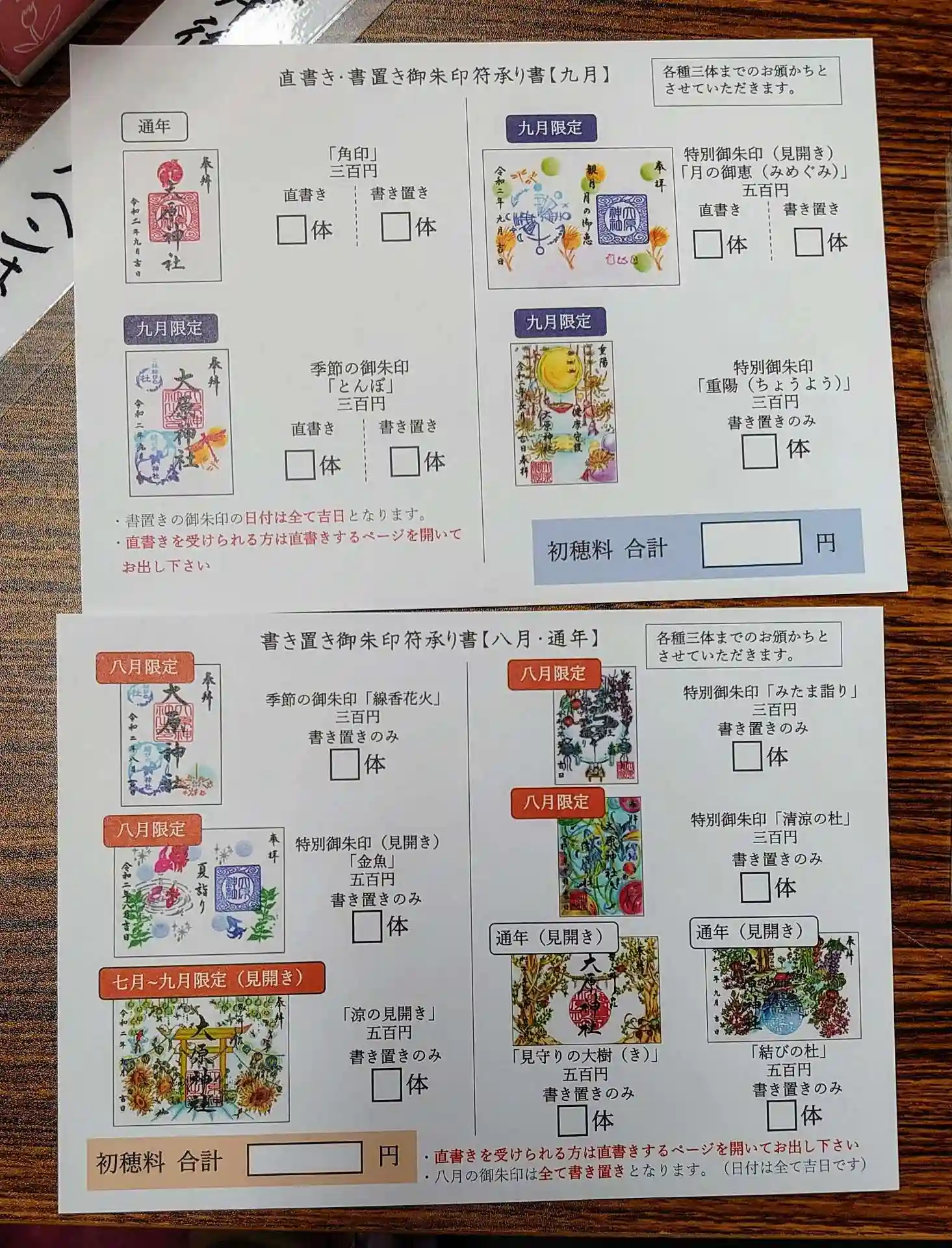 様々な種類の御朱印がありました