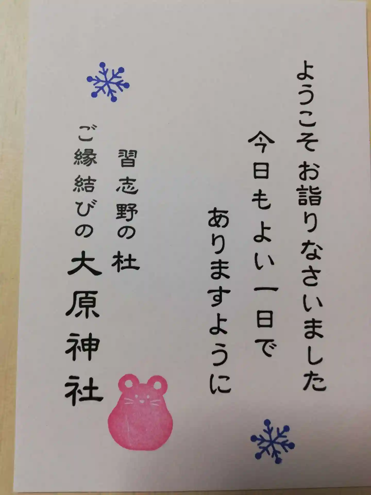 御朱印と一緒に頂いた、だるまカード。