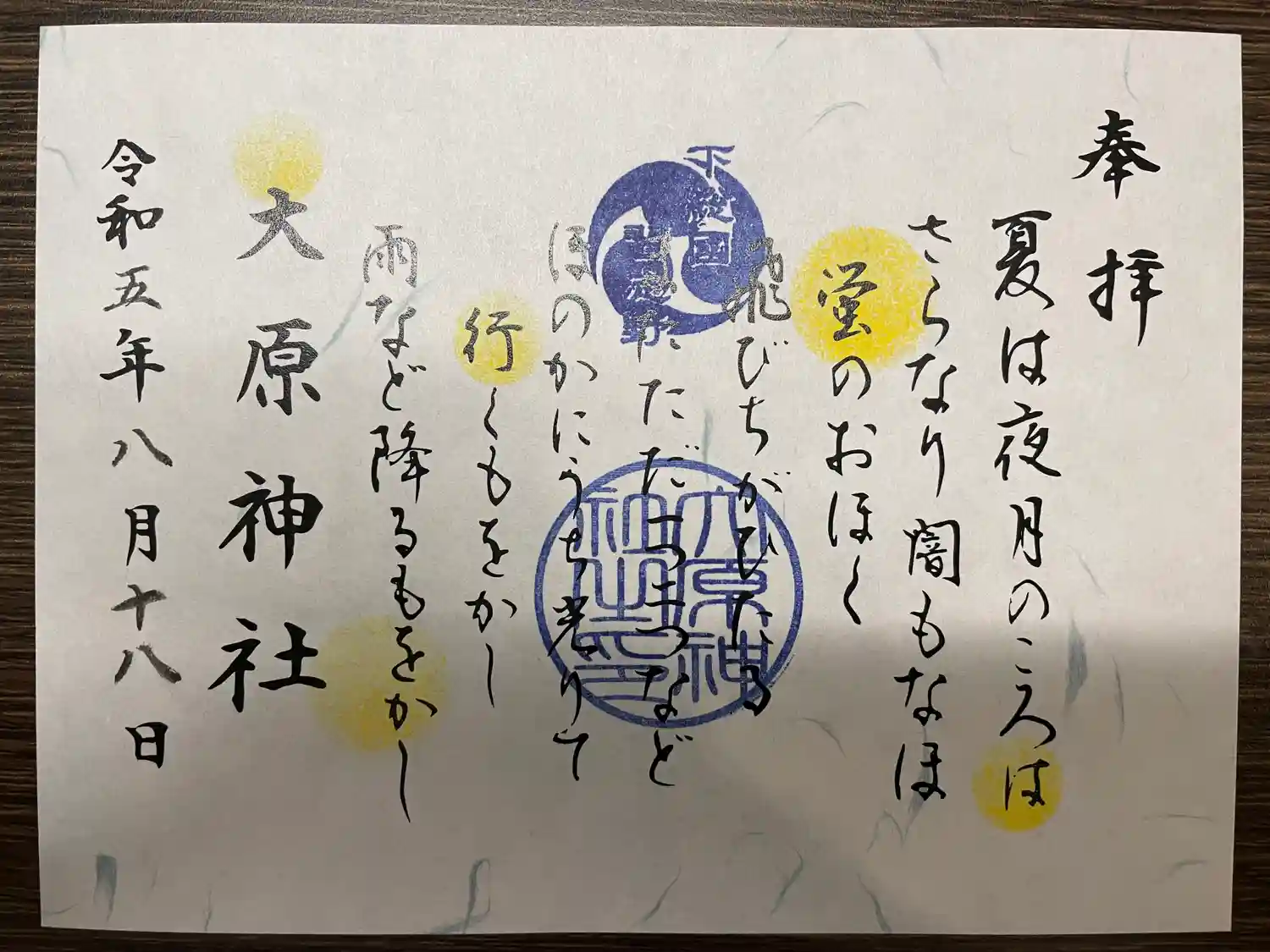 今月の書き置きの御朱印