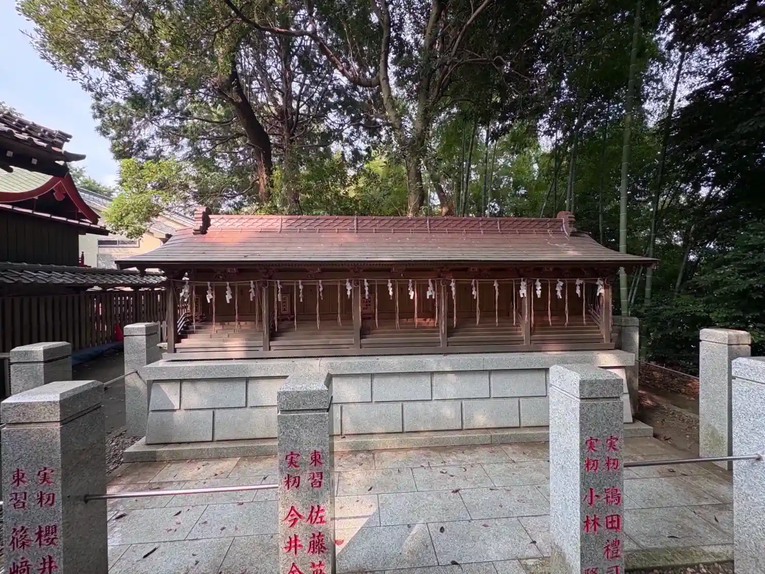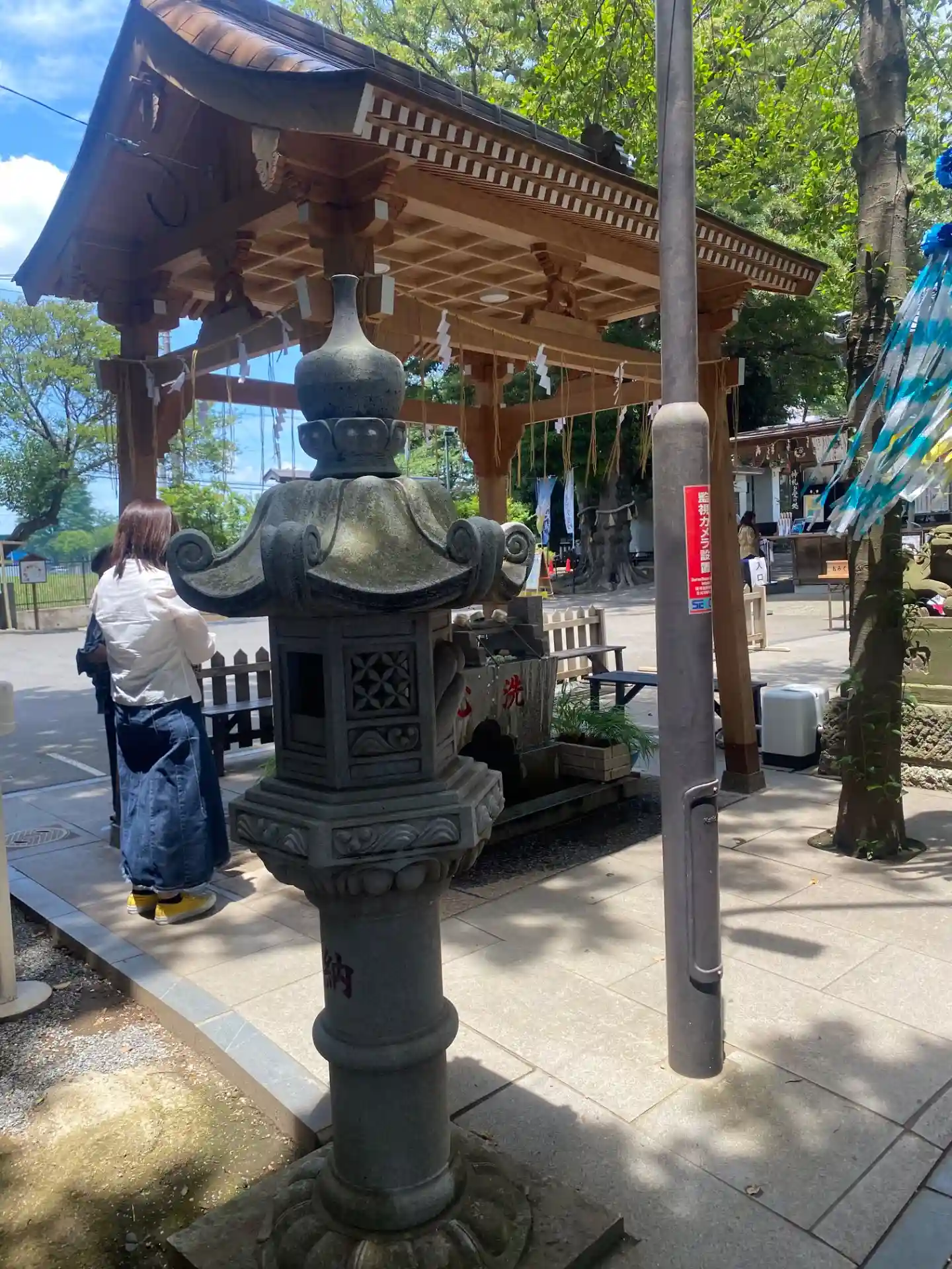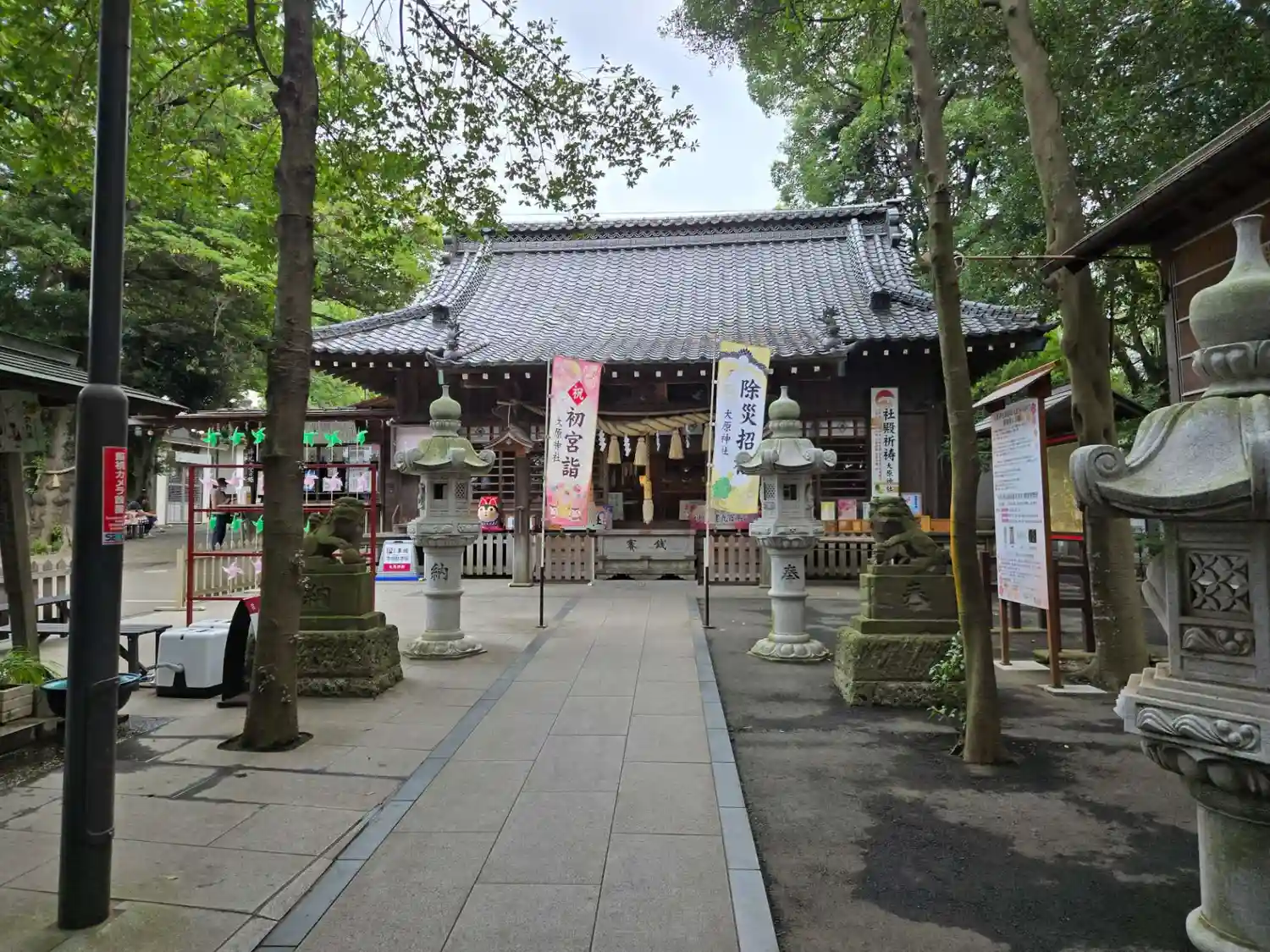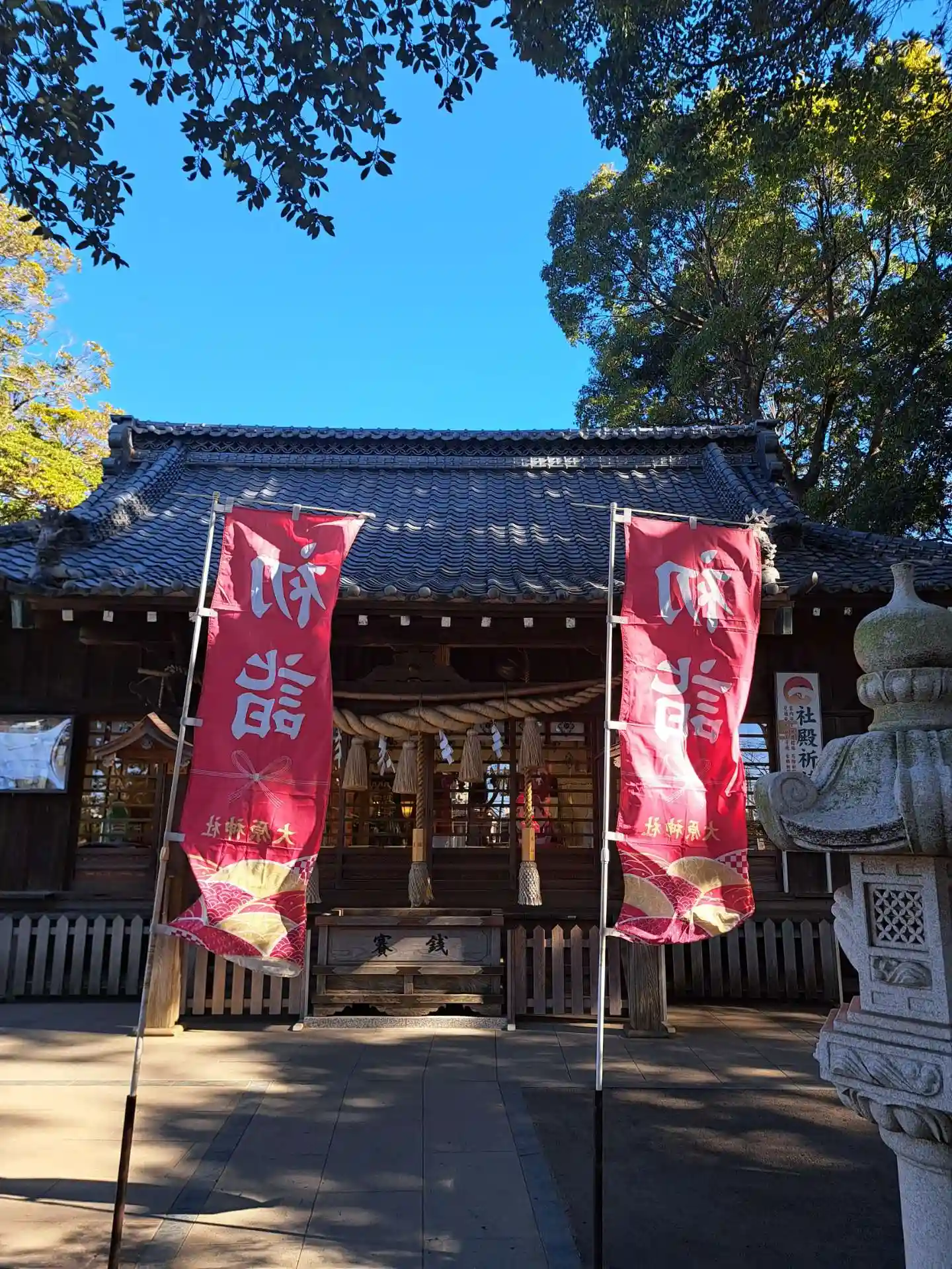 先月(6月)に境内の改修工事が完成し、拝殿前の敷石が新しくなった他、立派な燈籠も新設されました。