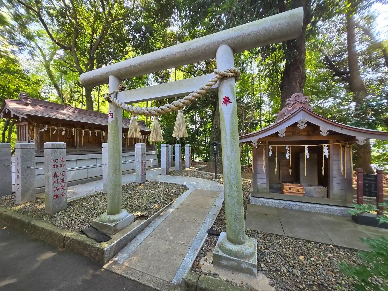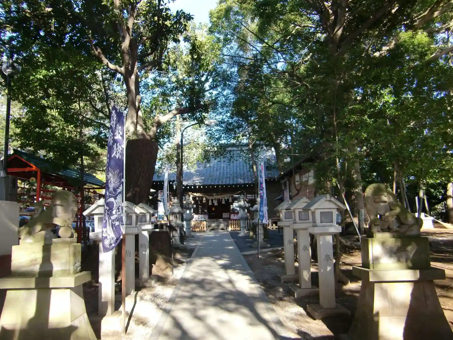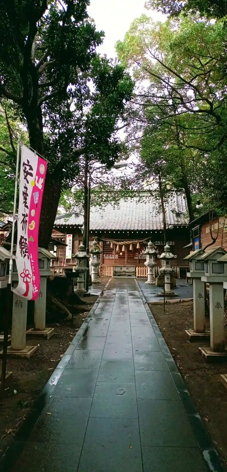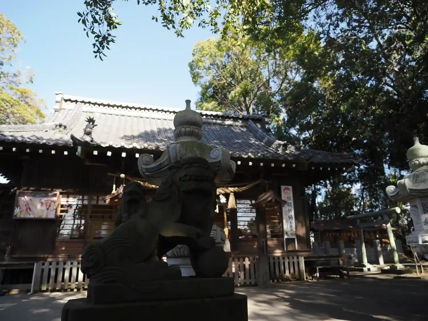 先月(6月)に境内の改修工事が完成し、拝殿前の敷石が新しくなった他、立派な燈籠も新設されました。