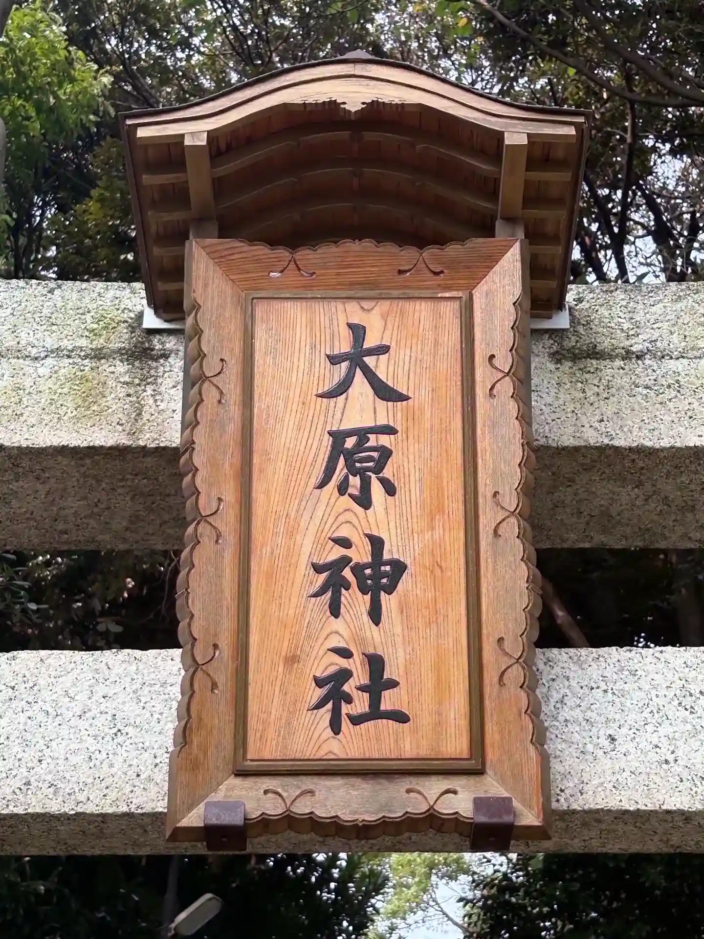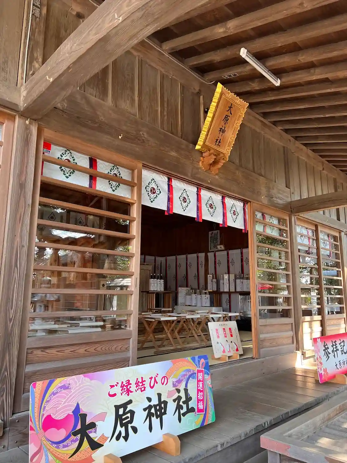当社鳥居横の結婚式の案内板にも、「大宮大原神社」とあります。