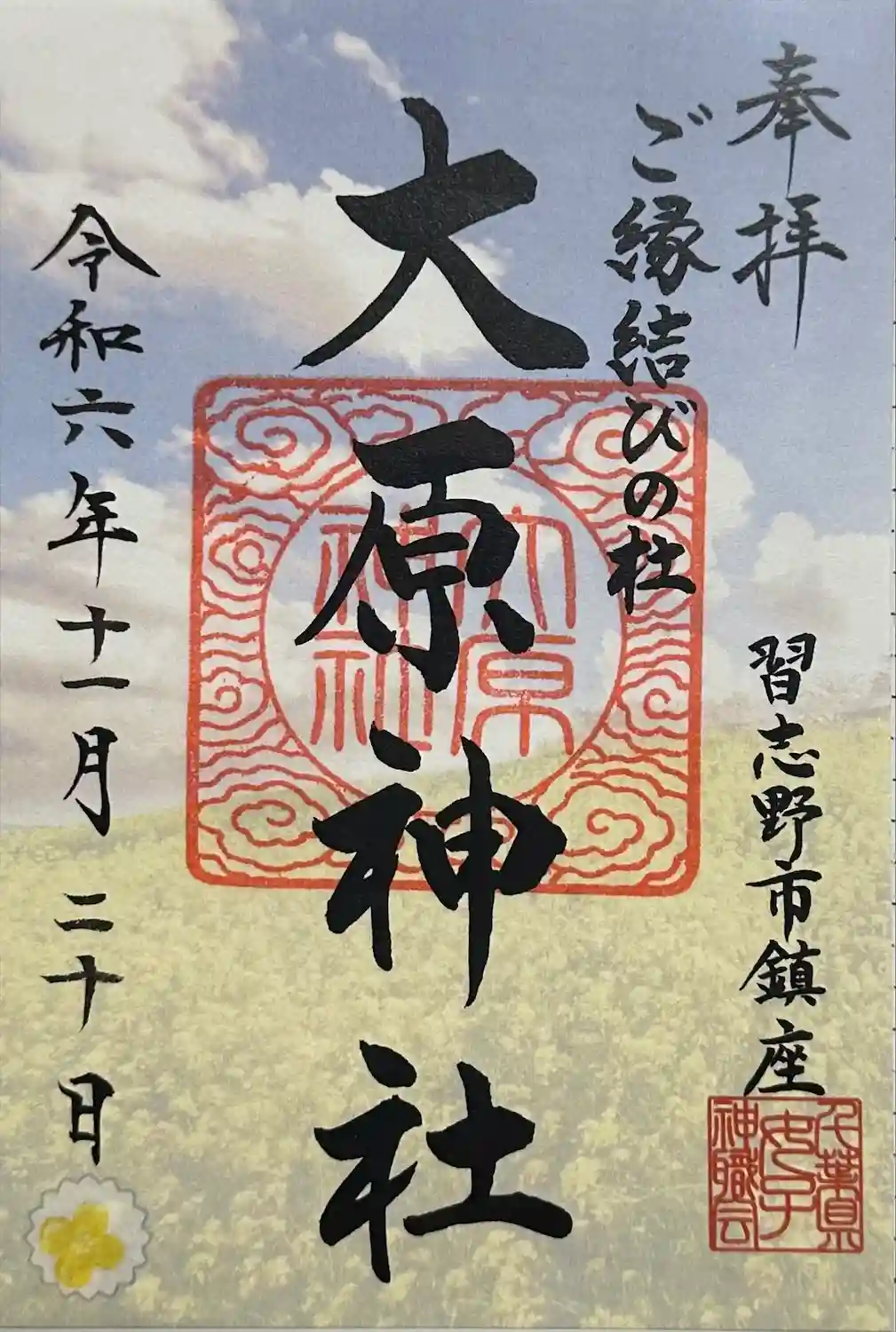 習志野名木100選に「珍しい木」として登録されており、御朱印帳のデザインになっています