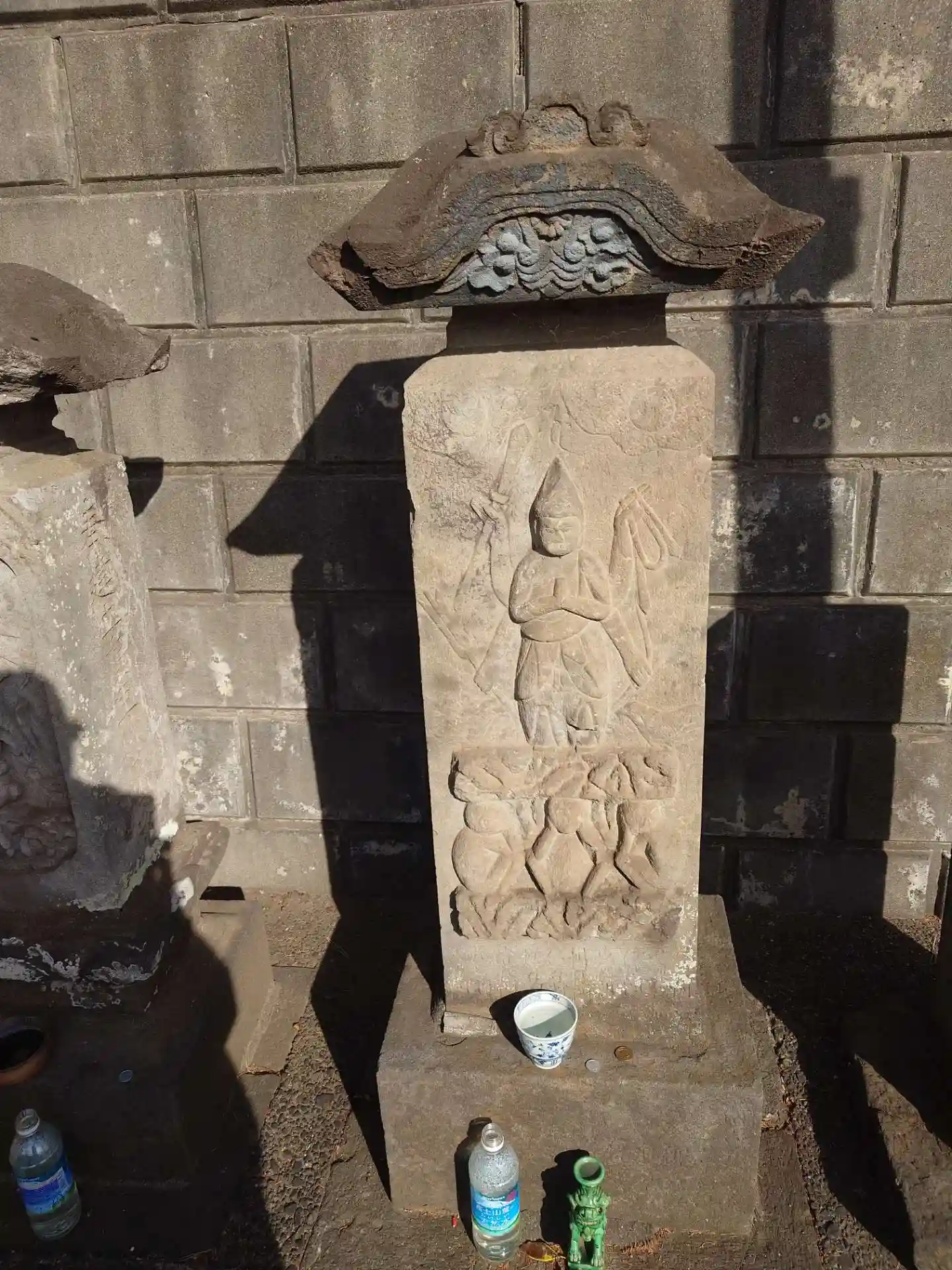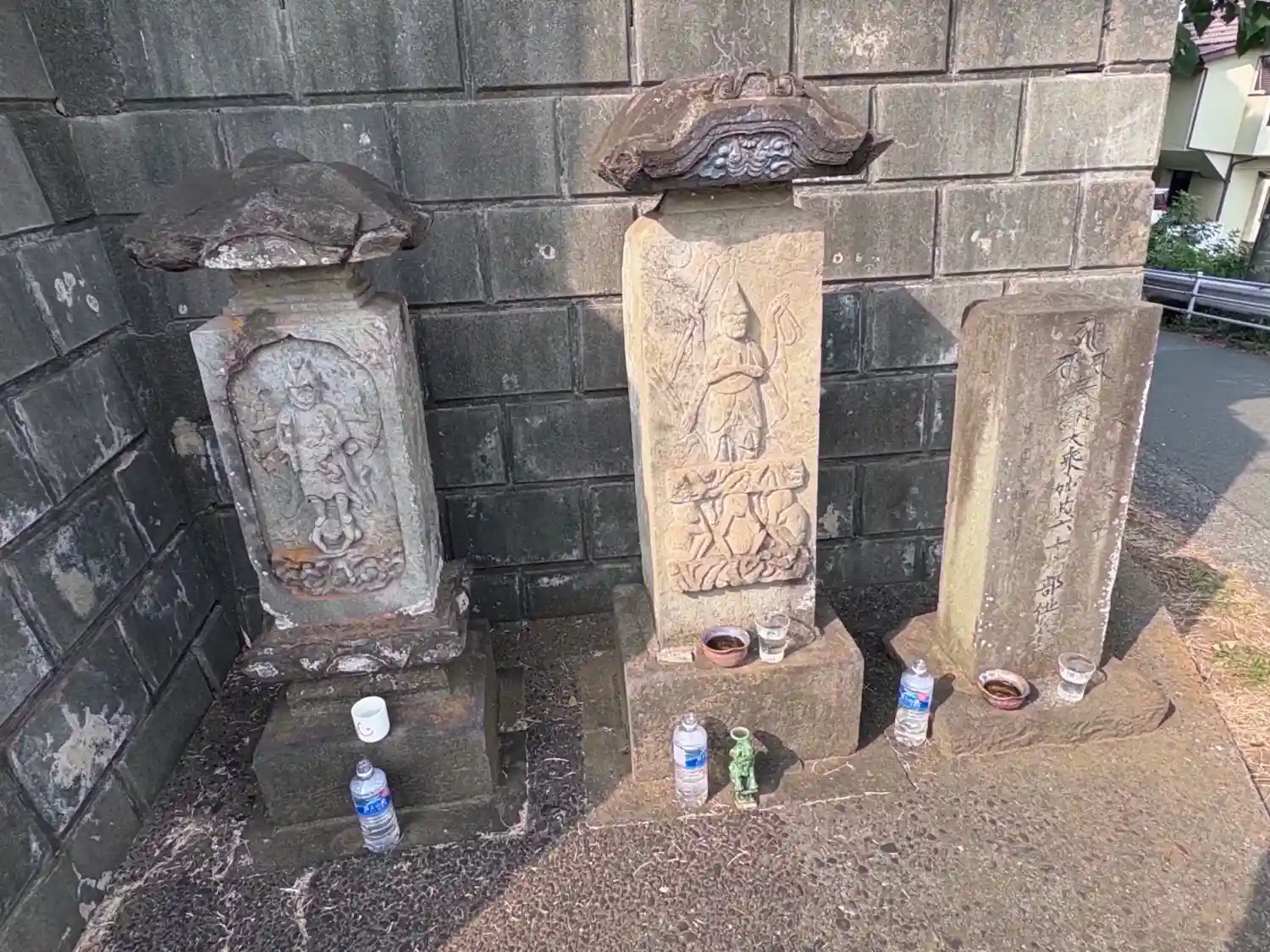 駅から向かうと神社の角に、いろいろお祀りされていました。勉強不足で、彫刻を見ても何の仏像かわかりません。
