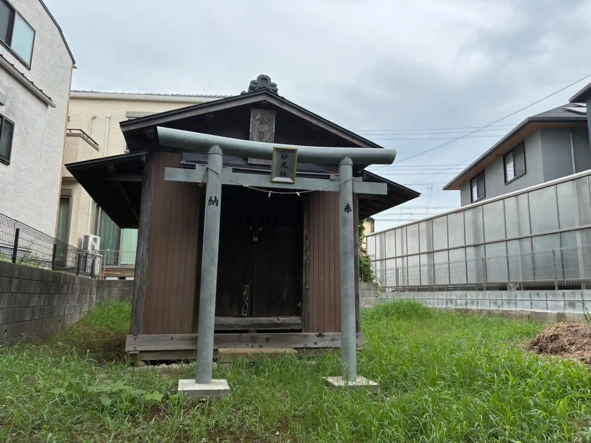 四方を宅地に囲まれた神社。