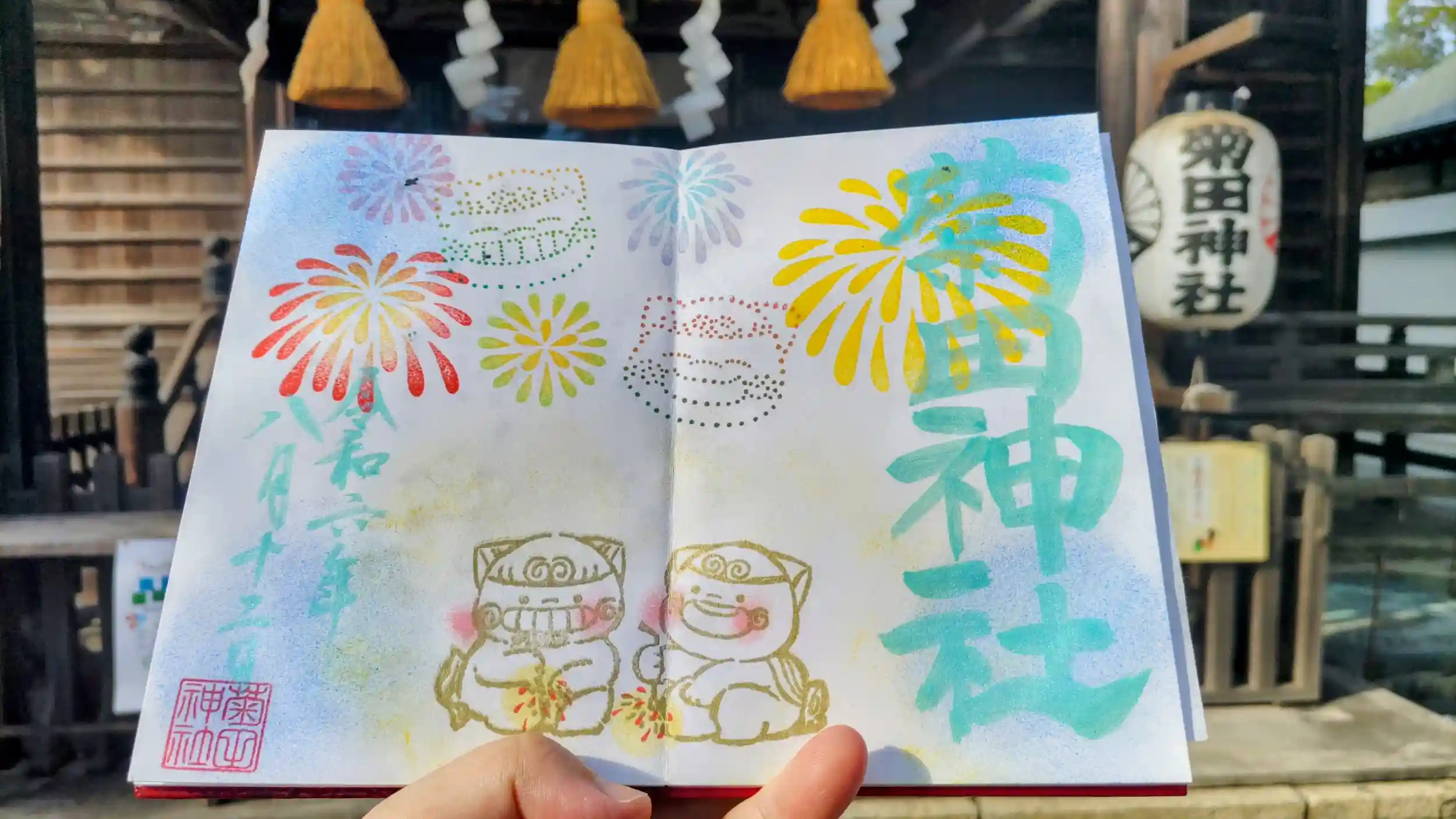 月替りのカラフルな見開き版の御朱印がいただけます。毎月2種はあるのですが、今回は見開き1種と通常版をいただきました。