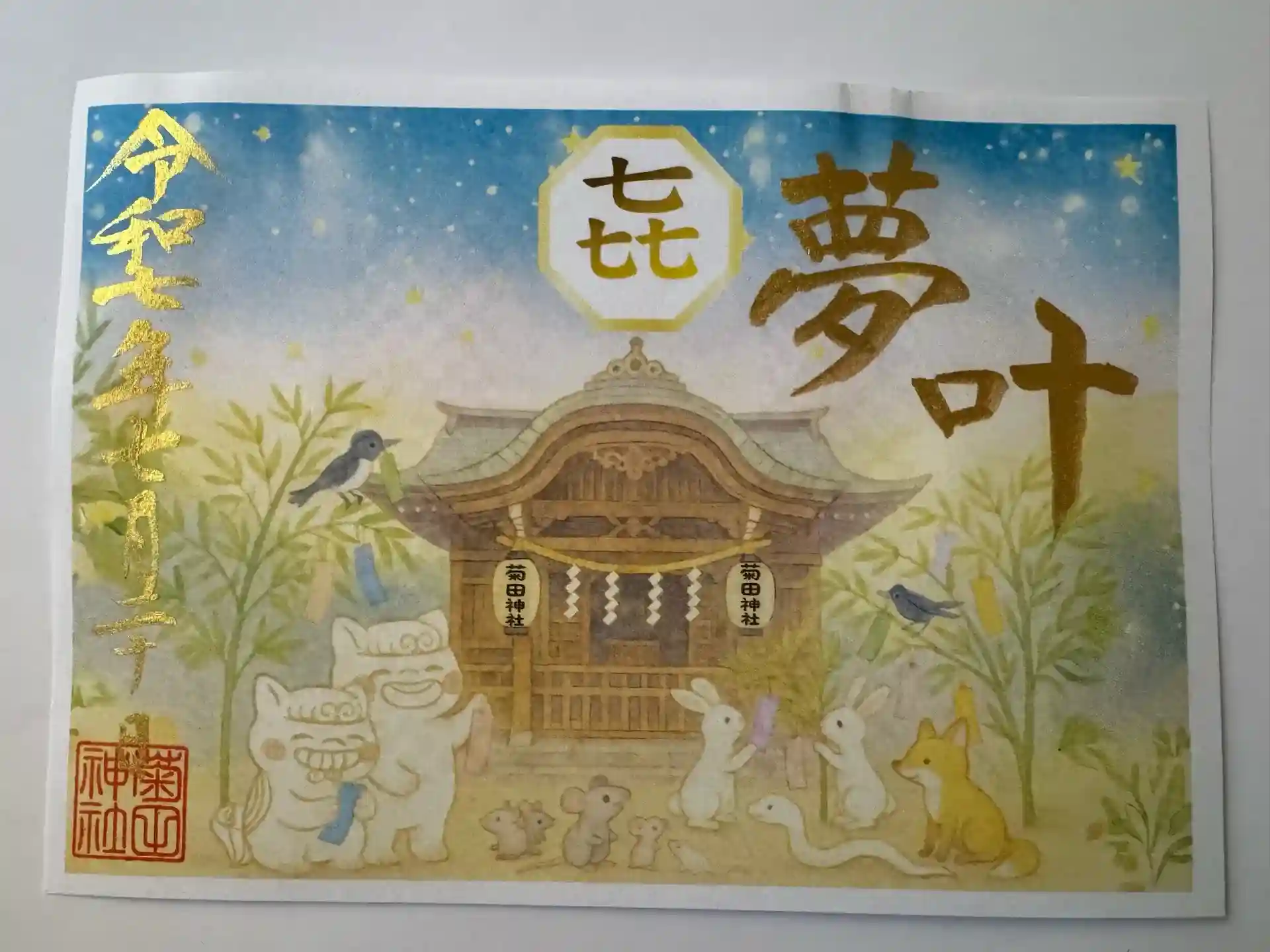 見開きでカラフルな手書き御朱印が素敵です。