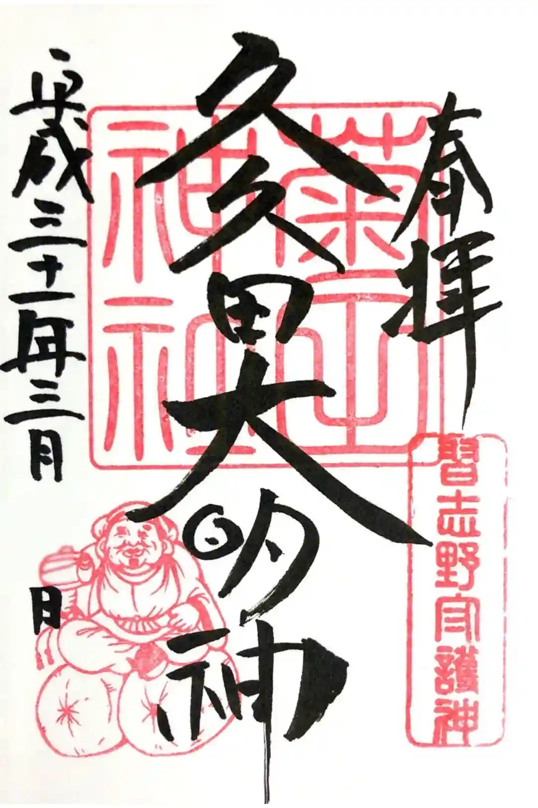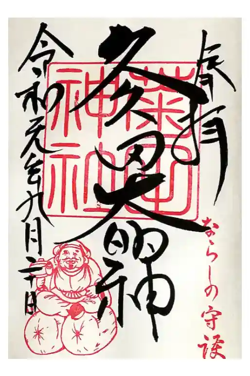通常御朱印です。御朱印帳限定御朱印と違い大黒様の印を押していただけました。