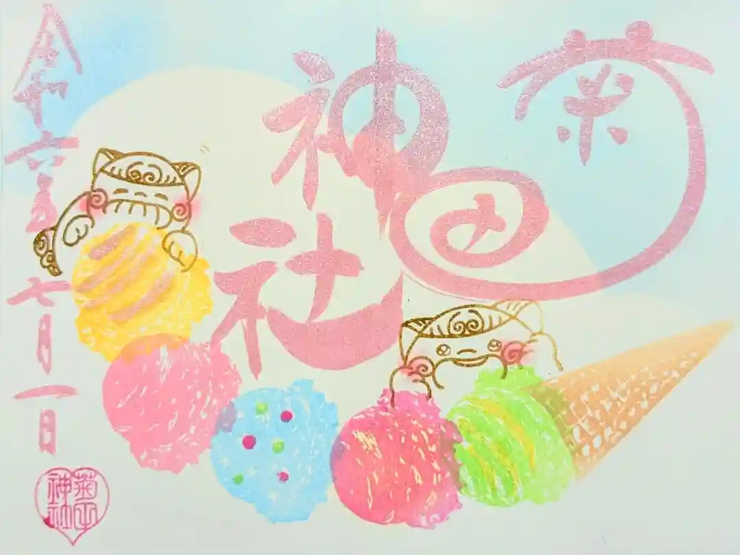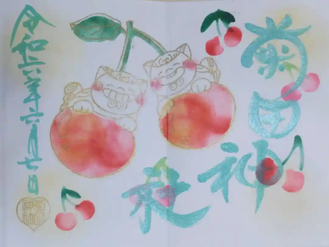 令和六年6月狛犬御朱印。さくらんぼと狛犬の絵