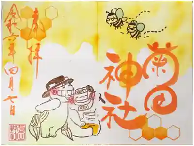 令和6年4月御朱印。みつばちとはちみつを楽しむ狛犬の絵
