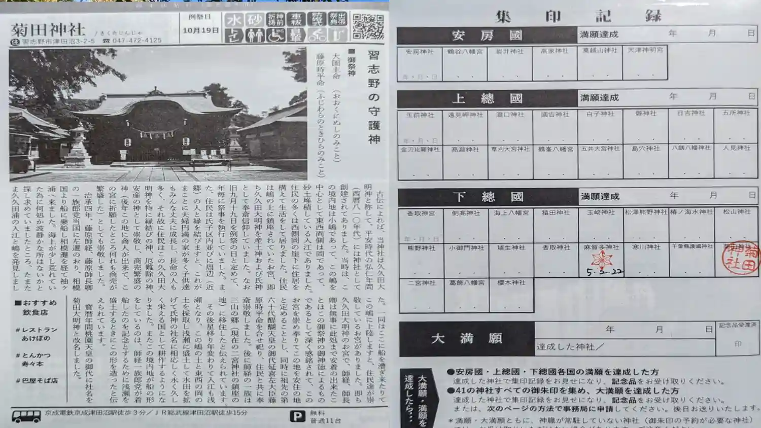 ③安房國•上總國•下總國各国の神社の御朱印を集めると満願。