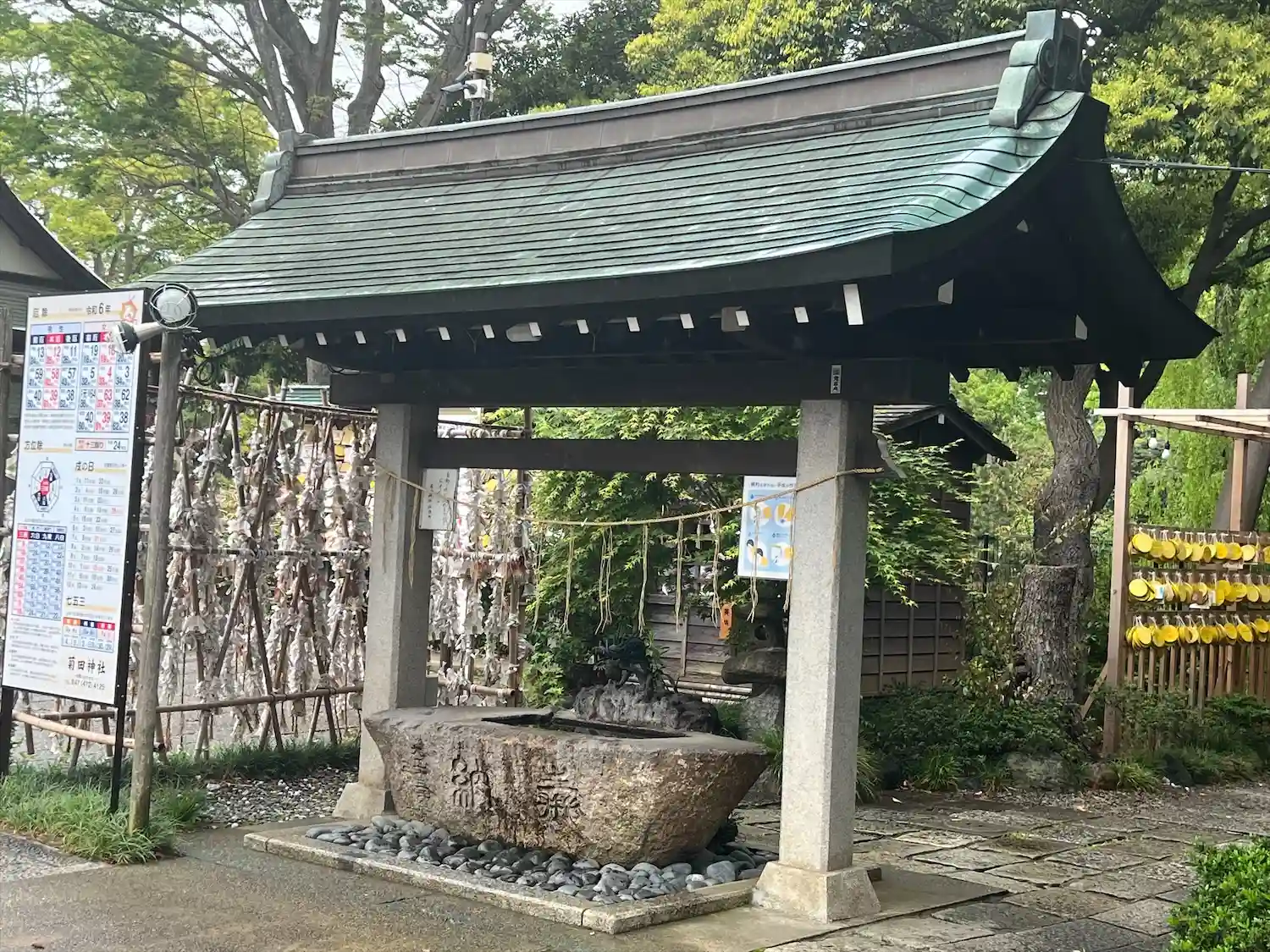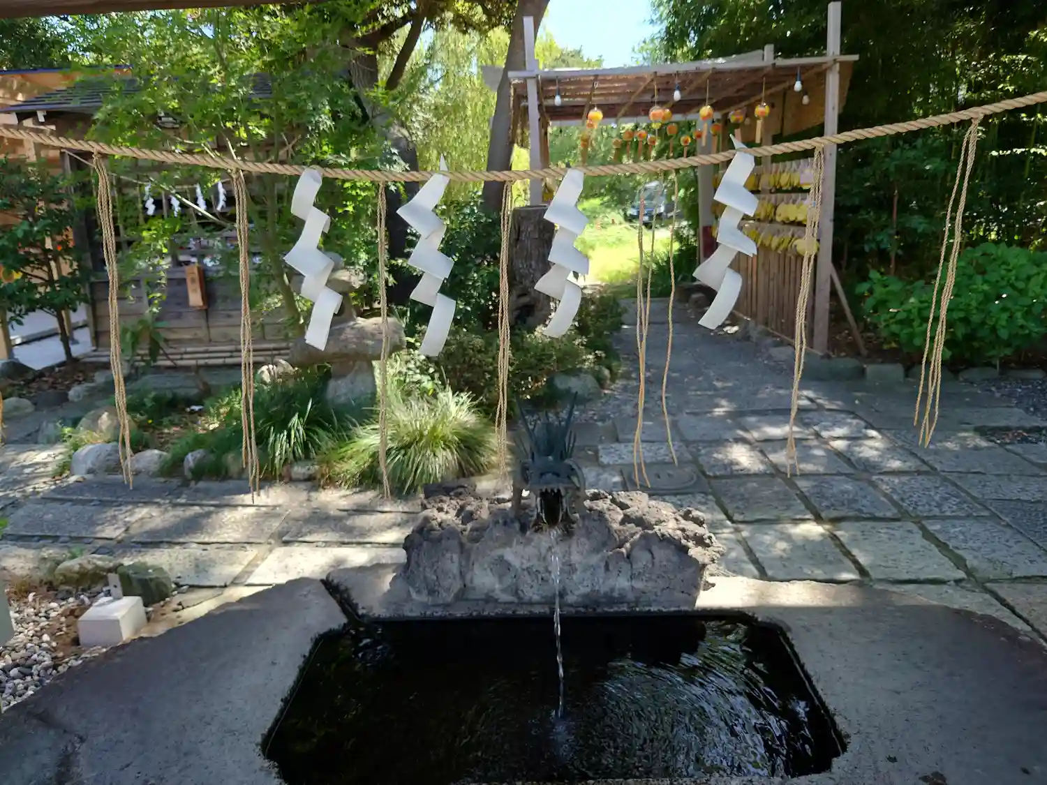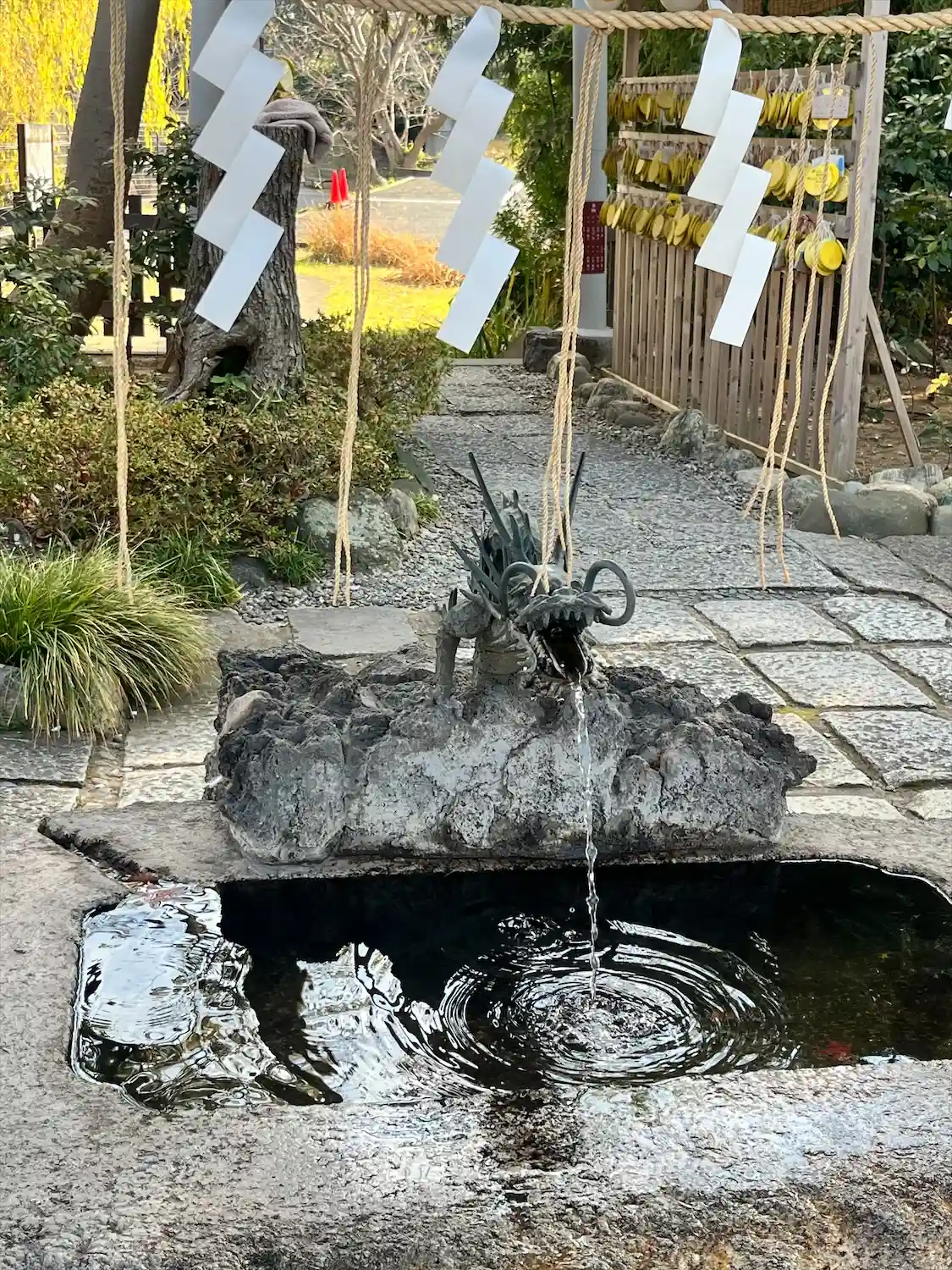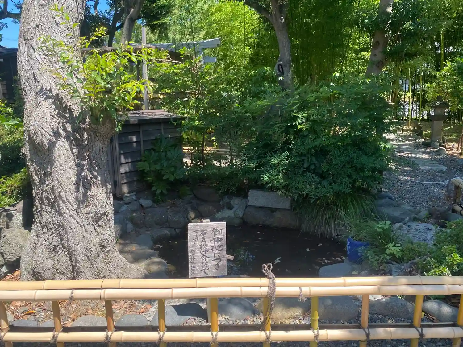 こちらでは喫煙スペースが拝殿の右側の池の前にあります。