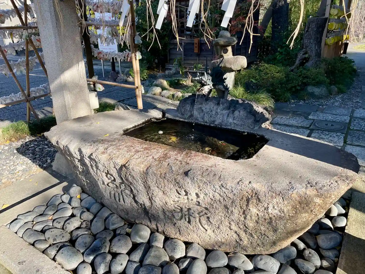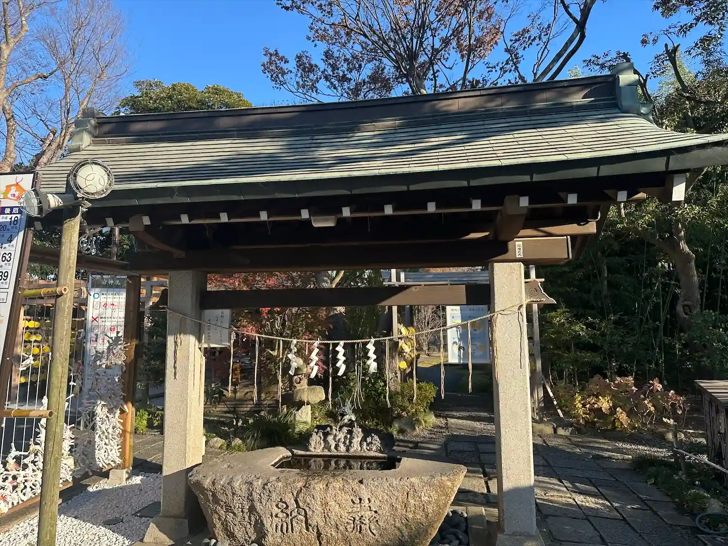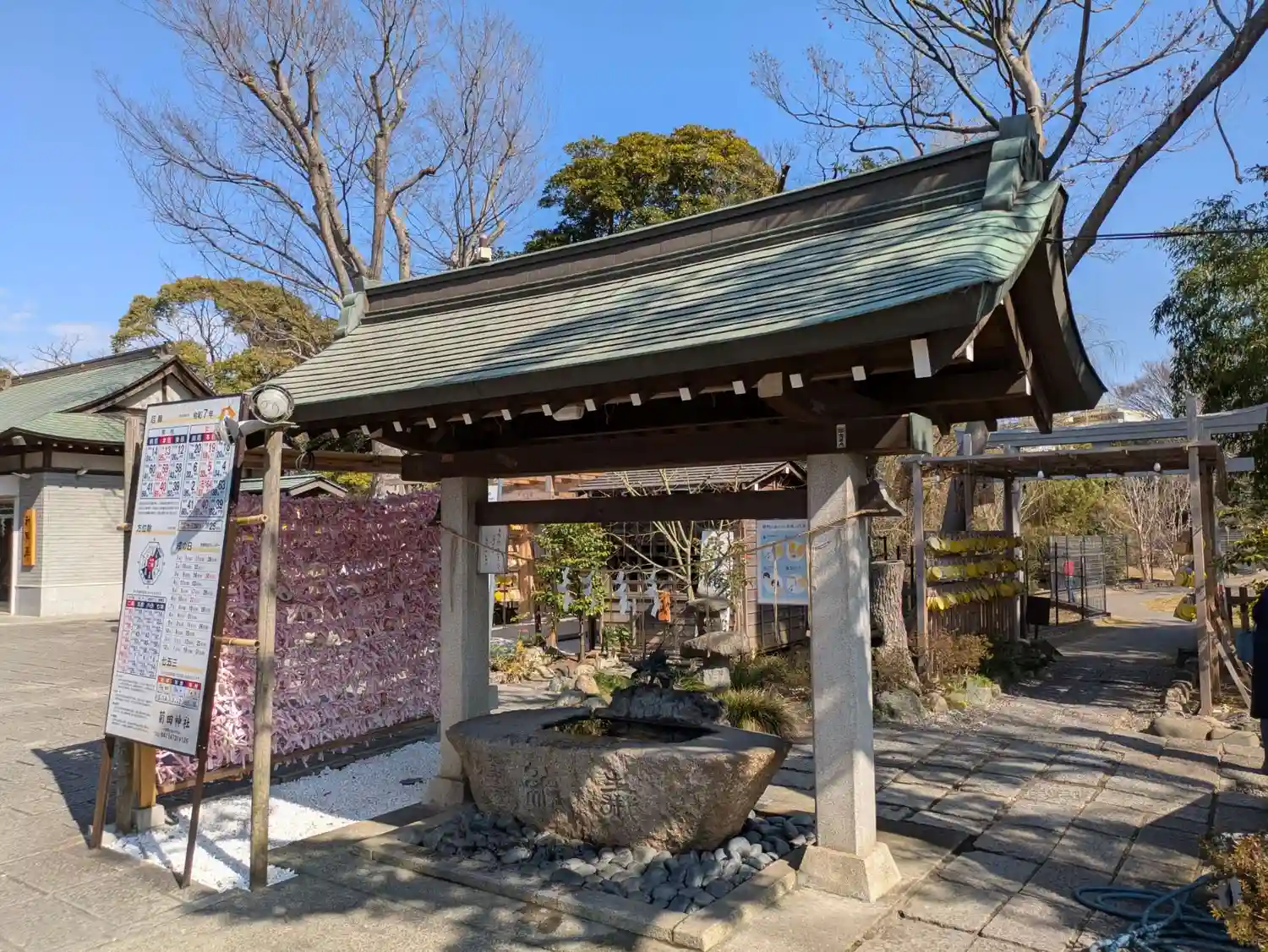 こちらでは喫煙スペースが拝殿の右側の池の前にあります。