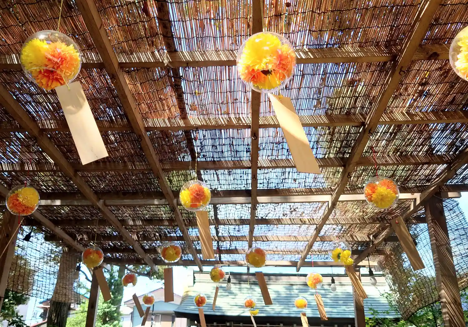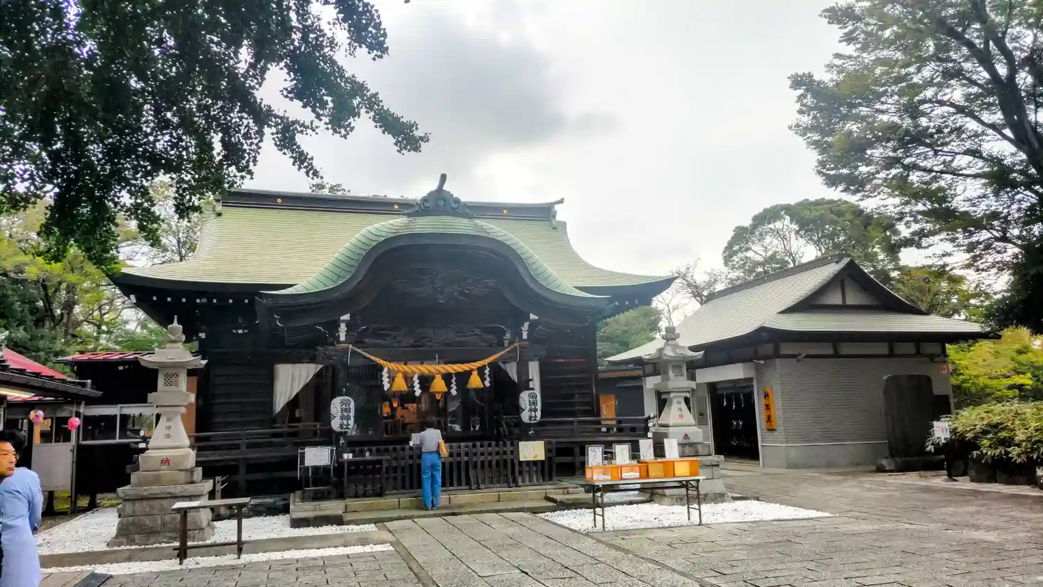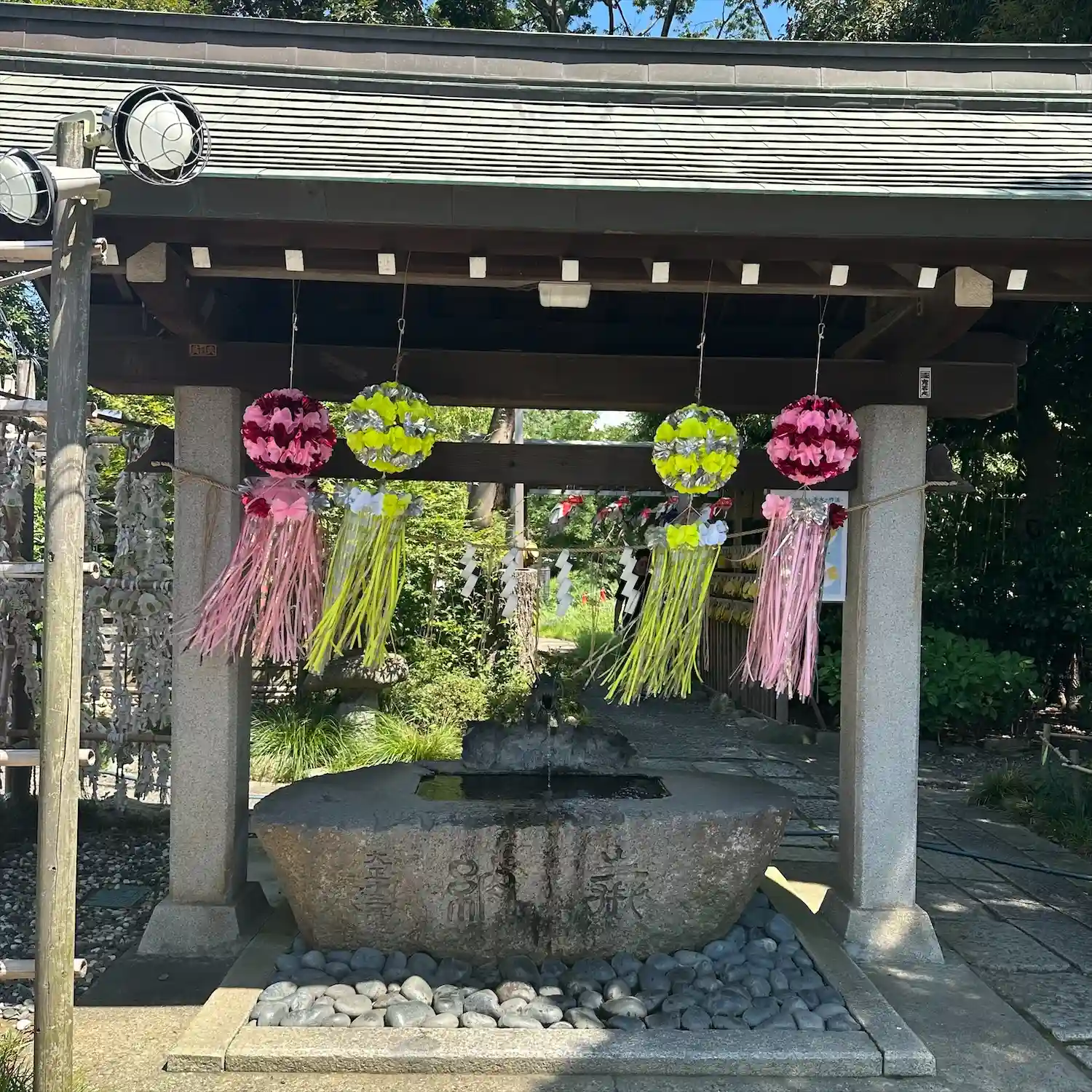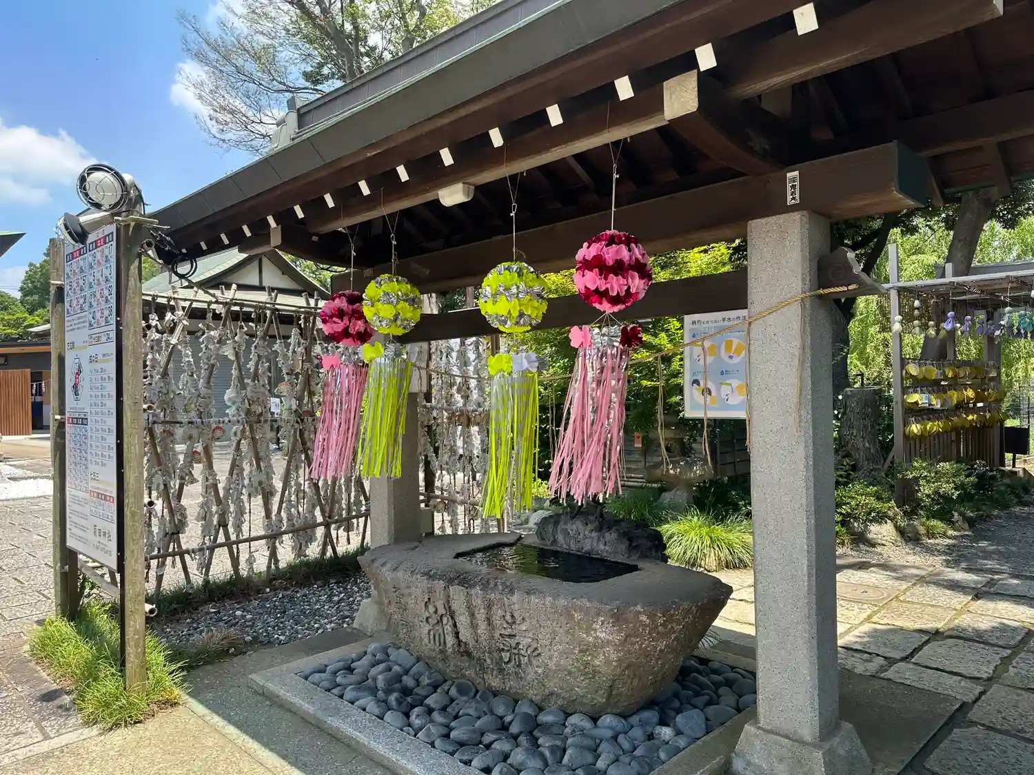こちらでは喫煙スペースが拝殿の右側の池の前にあります。