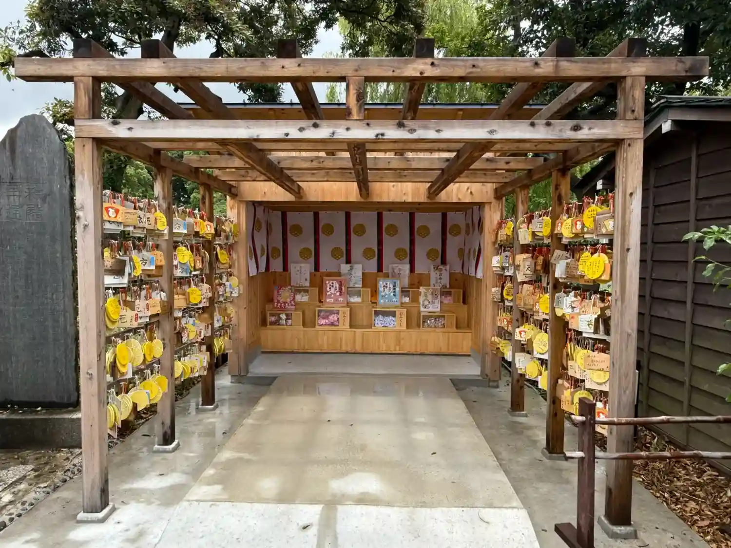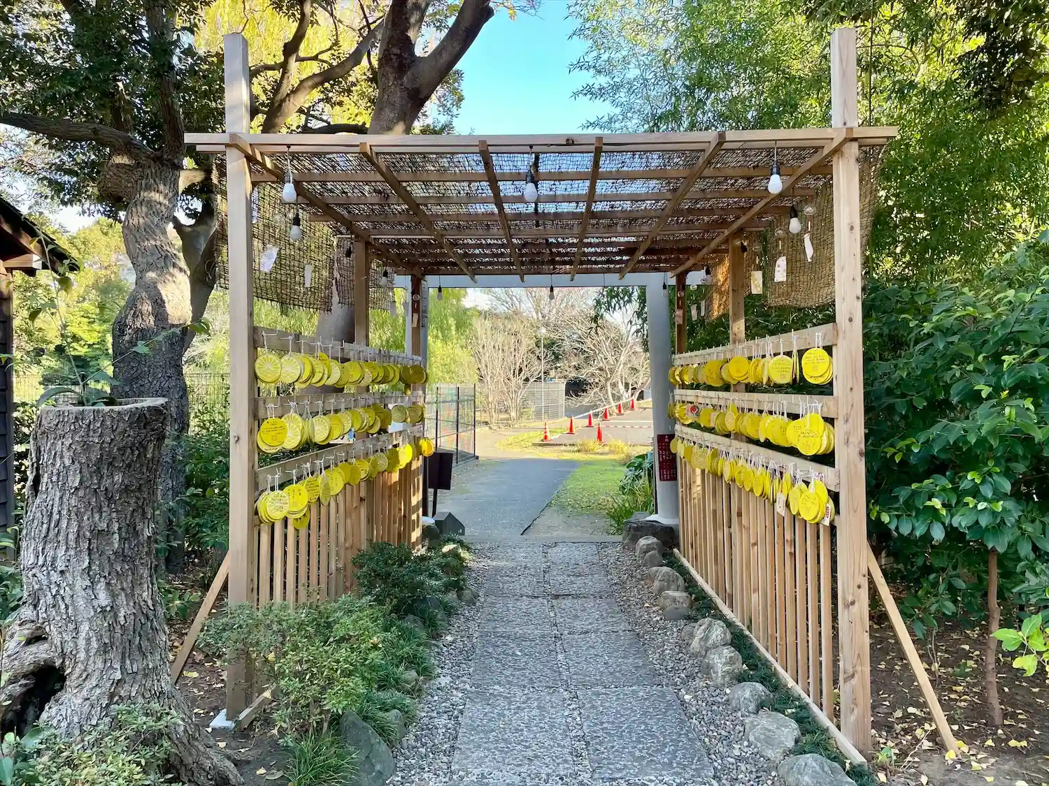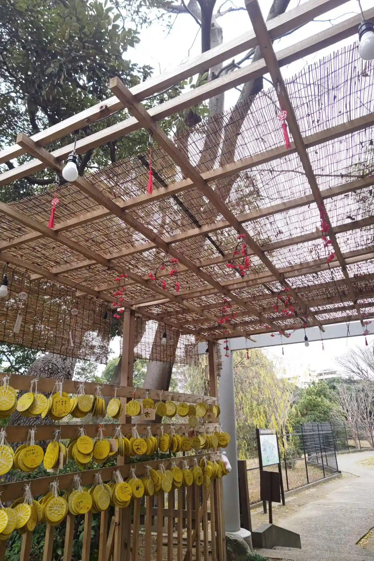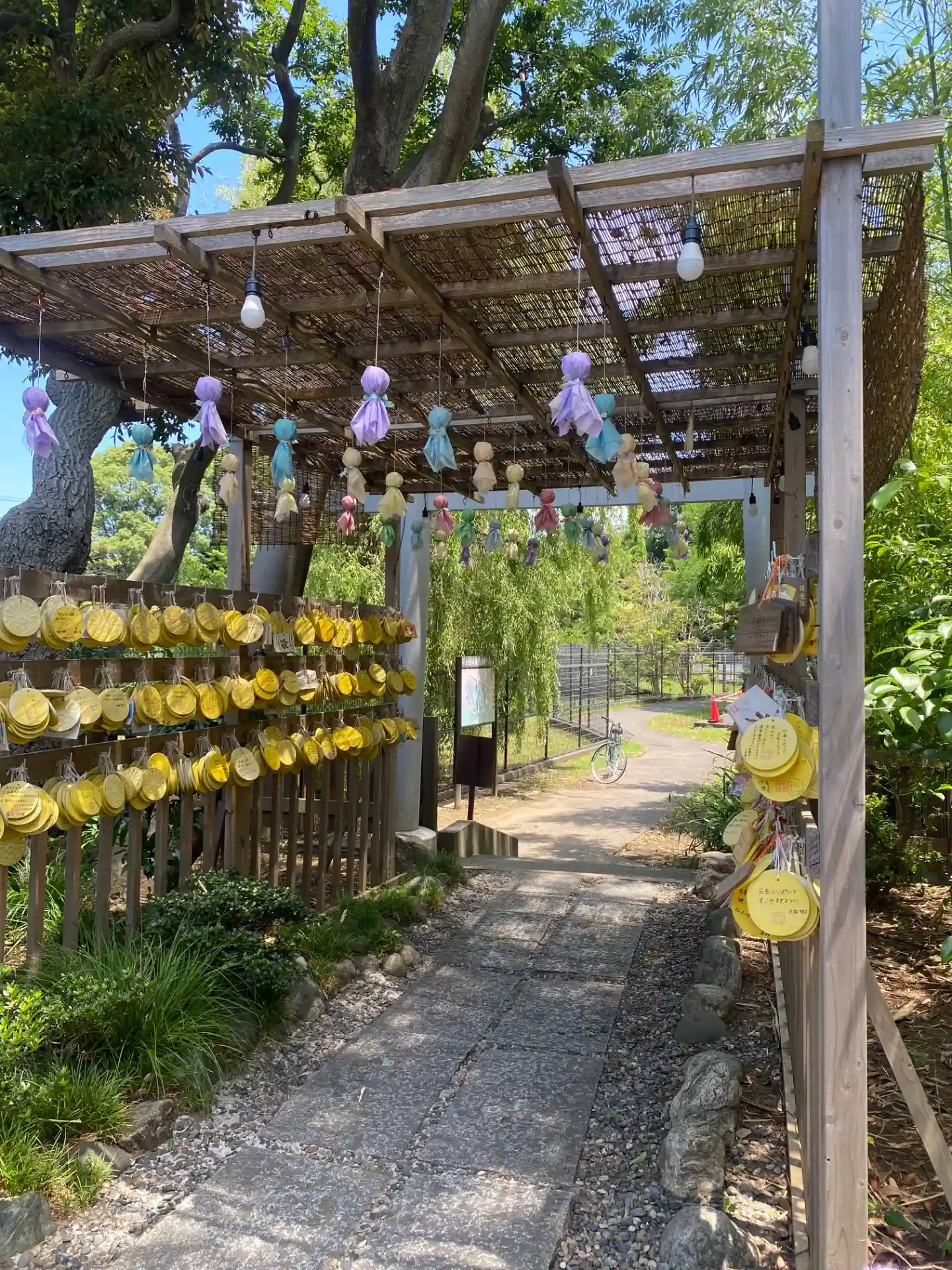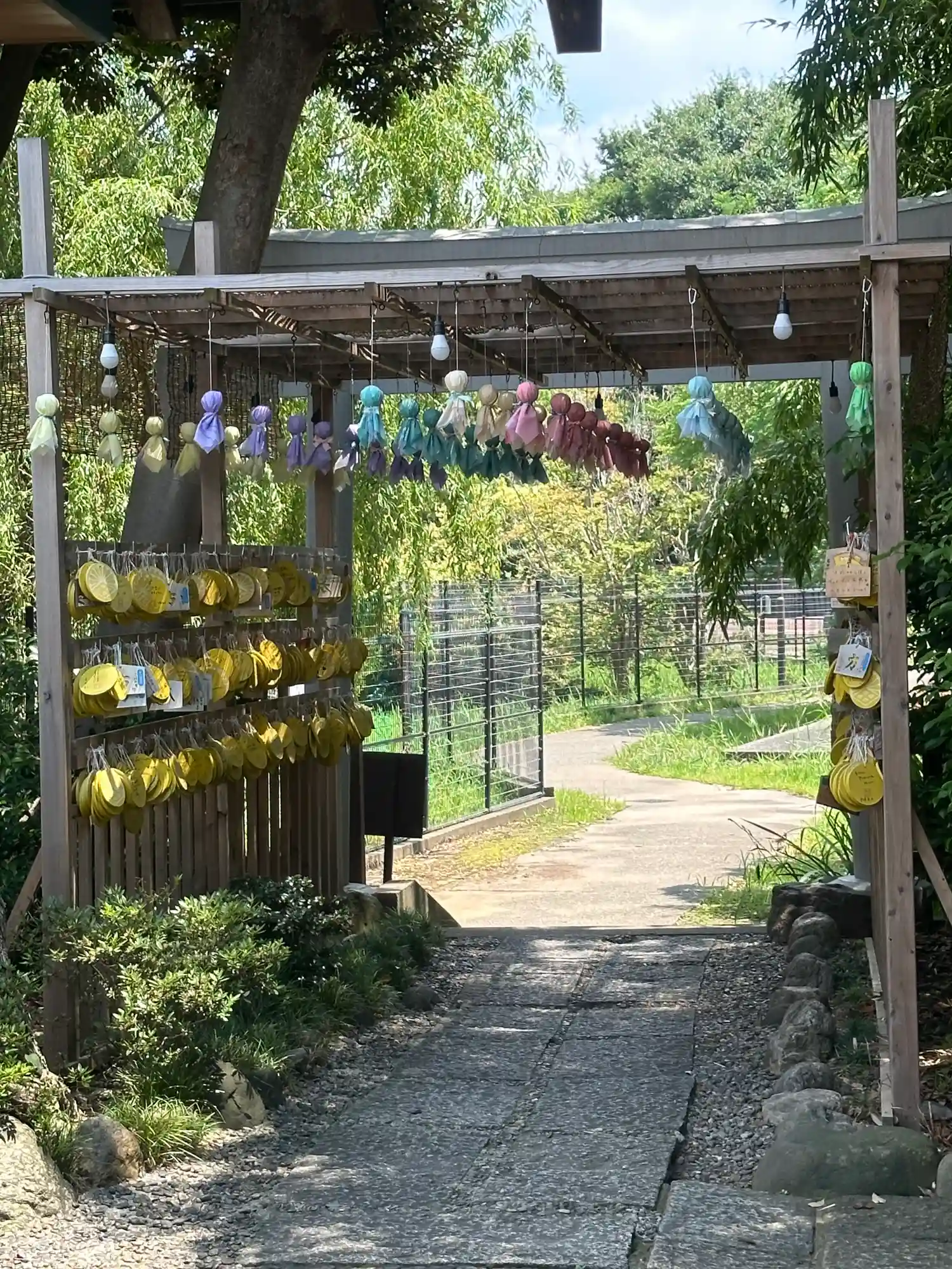 境内から隣接する菊田水鳥公園に行く通路に絵馬をかけるトンネルができていました