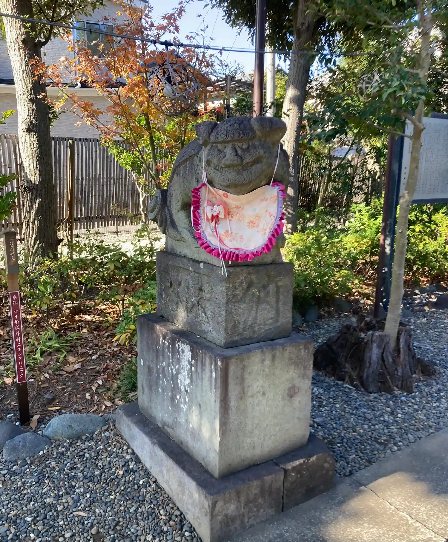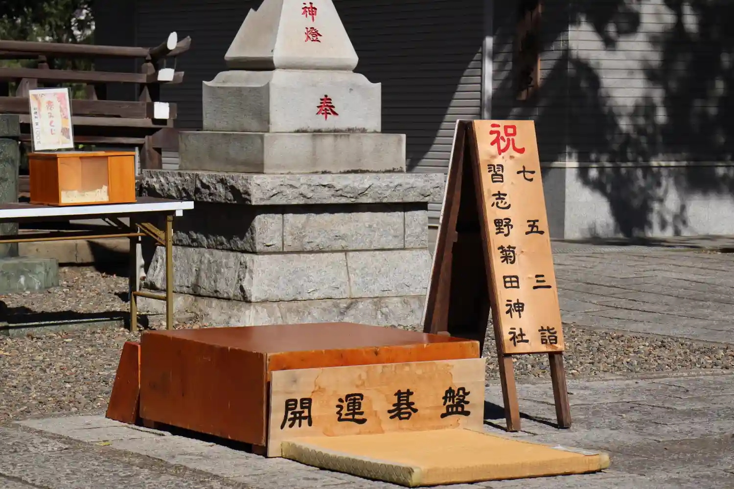 神社の敷地が工事のため、駐車場に石碑などが仮置きしてありました。
