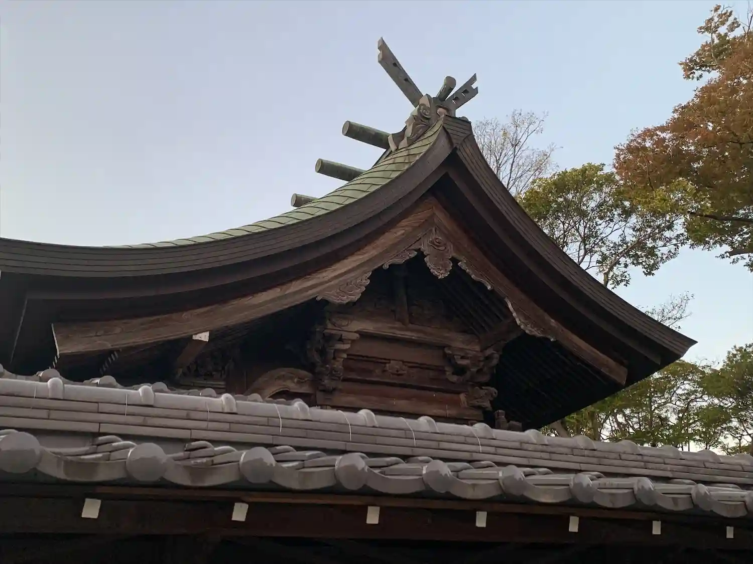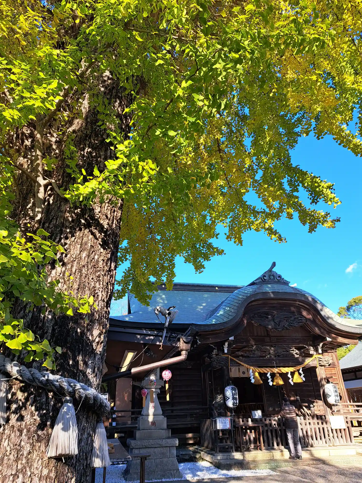ご神木の銀杏はまだ青々していました。