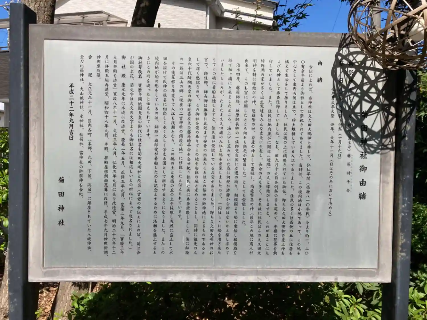 千葉方面にプチ遠征し、千葉県習志野市の菊田神社様に参拝に伺いました。