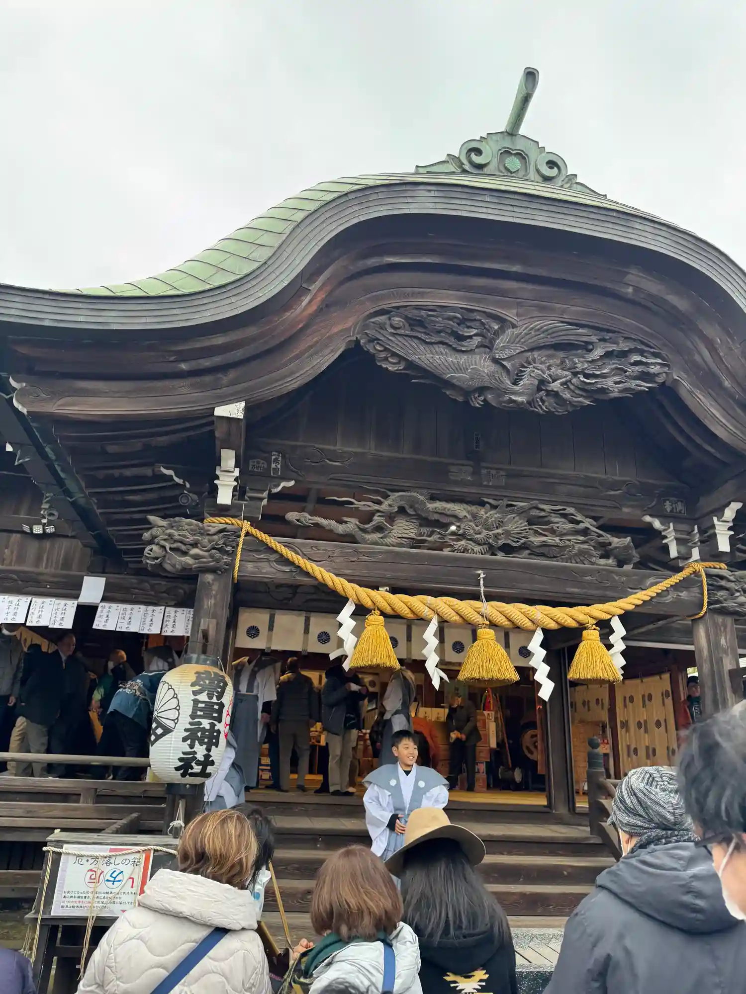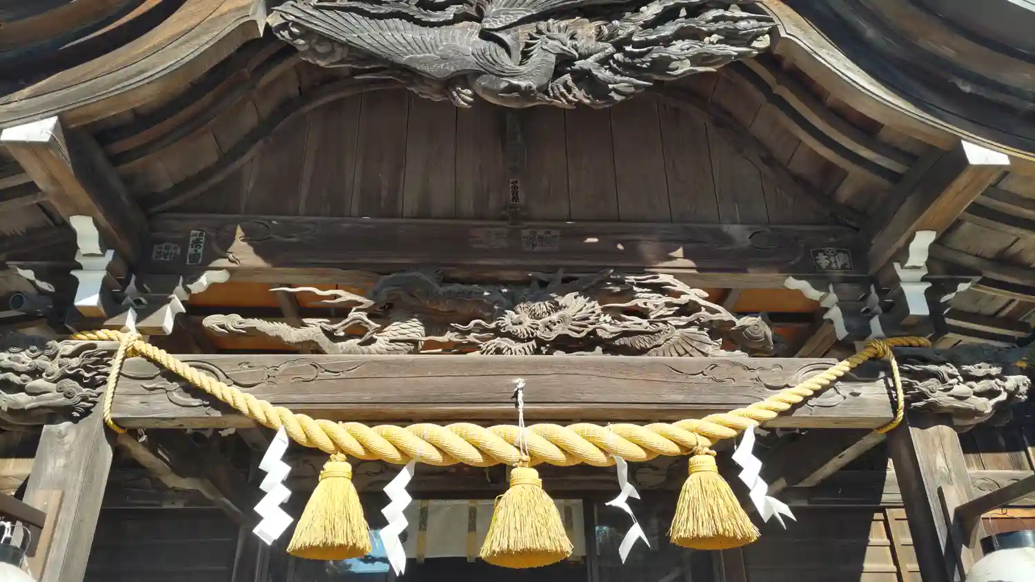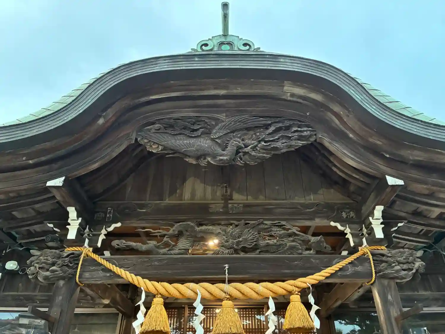 神社の彫刻(彫り物)が鳳凰で大きく立派でした。龍もすごく迫力満点です。四月の御朱印を頂きましたが、…
