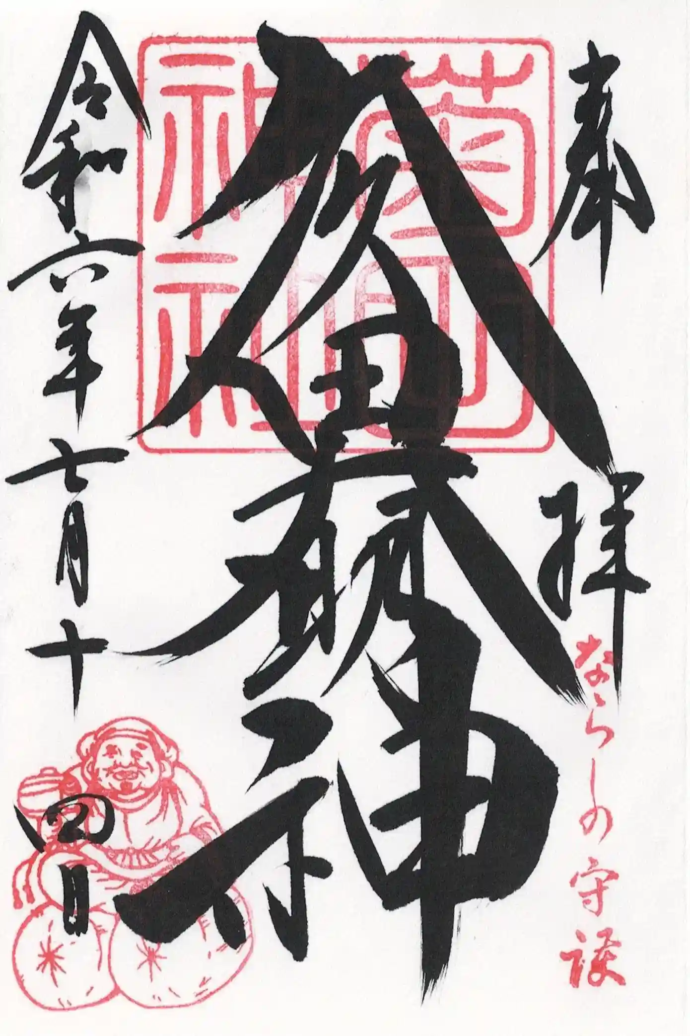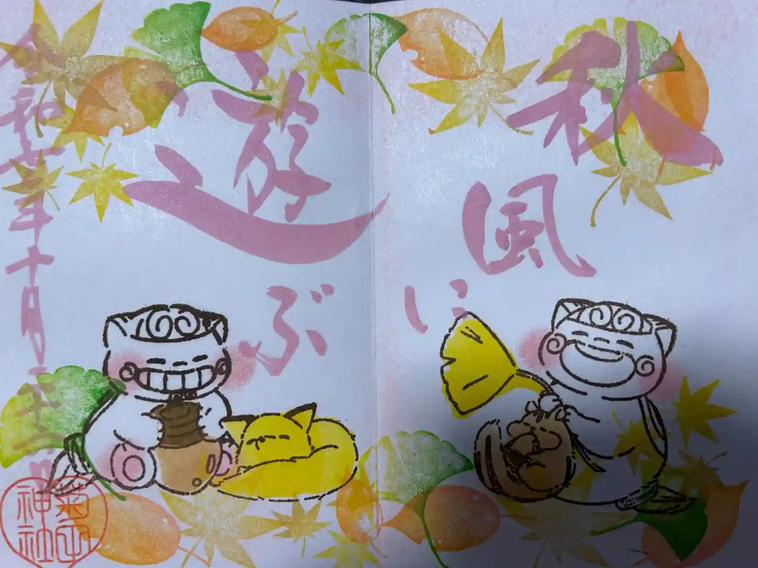 とても素敵な御朱印とアイーンの狛犬で有名です。奇数月と偶数月を並べると…