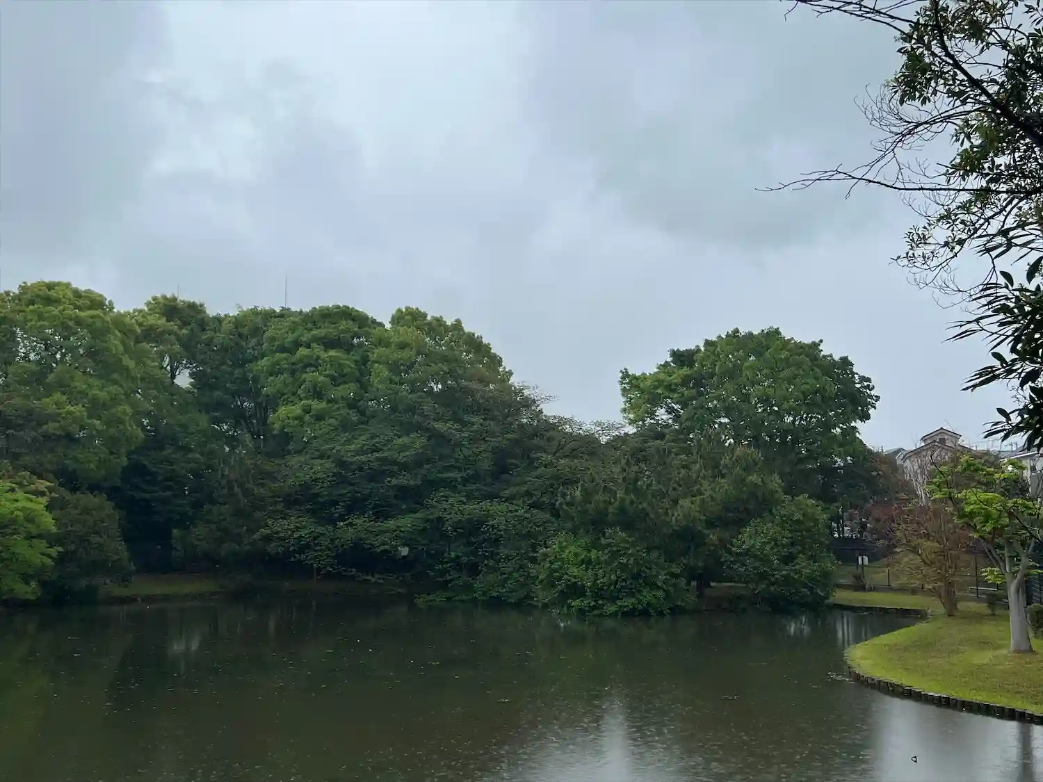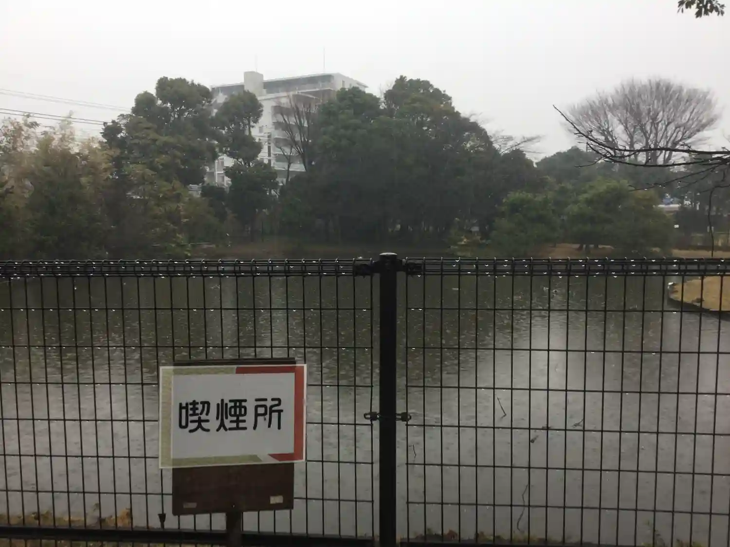 鉄オタ的には池の奥側に総武線が走ってます。一服してる間に黄色い電車や成田エクスプレスが通りすぎて行きました。