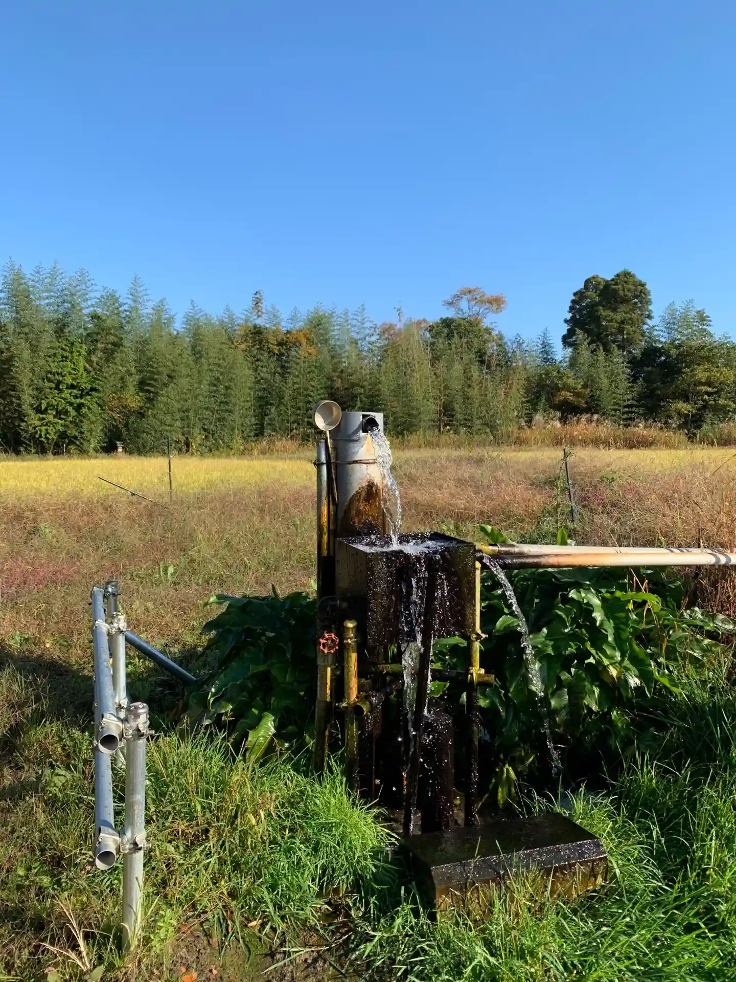 田んぼの中のお寺。水が湧いてます。
