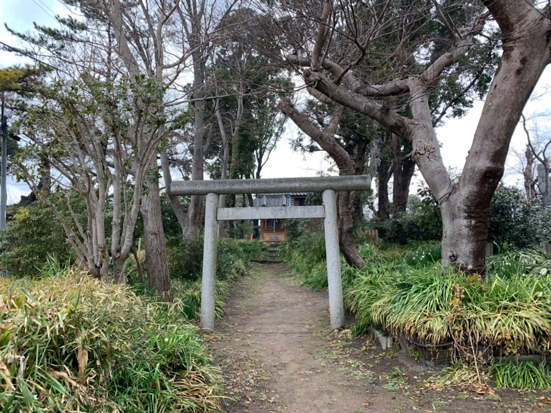 おそらく飯香岡八幡宮の境内社。神社の倉庫と思われる特徴的な建物が隣接します。