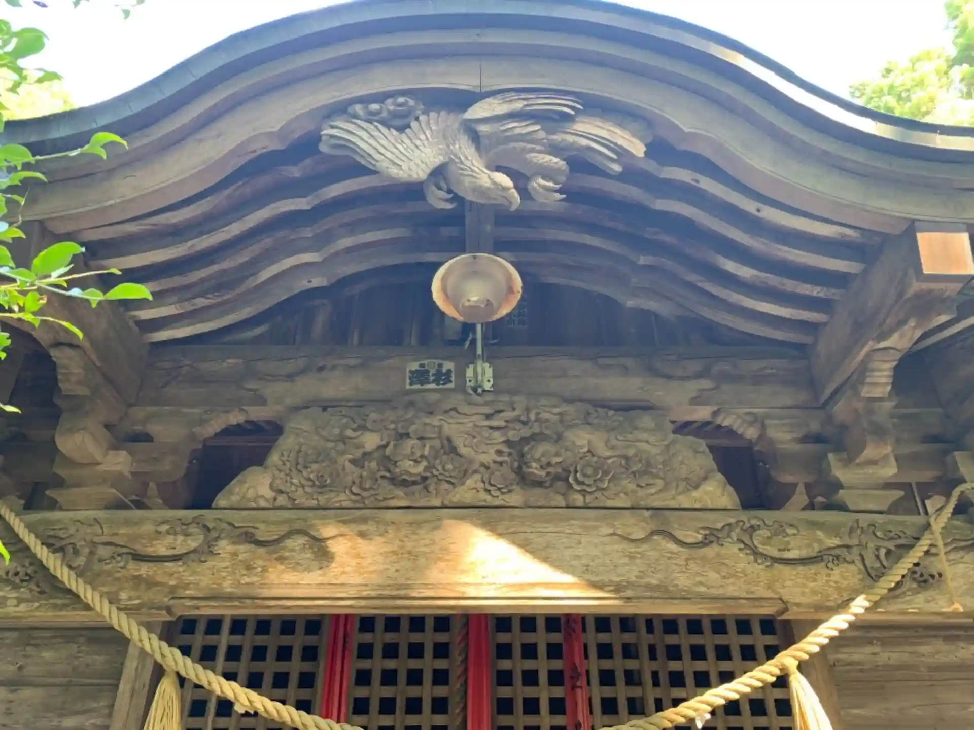 拝殿の向拝には唐獅子牡丹が彫られています。作者は平野太郎平と藤原道成。上総ではあまり聞かない名前です。