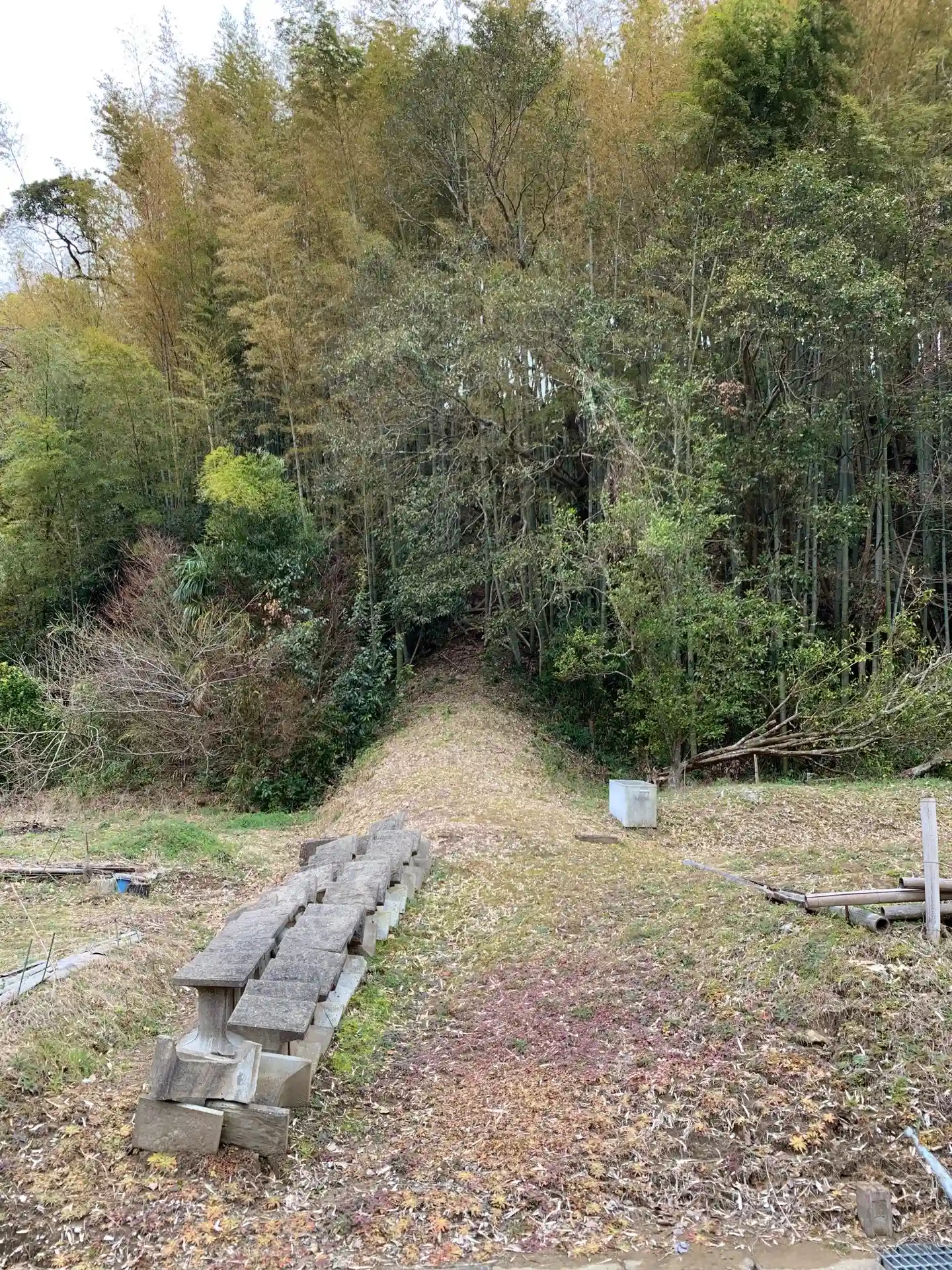 追記:よく見ると鳥居を据えたと思われる石が残っています。画面中央。
