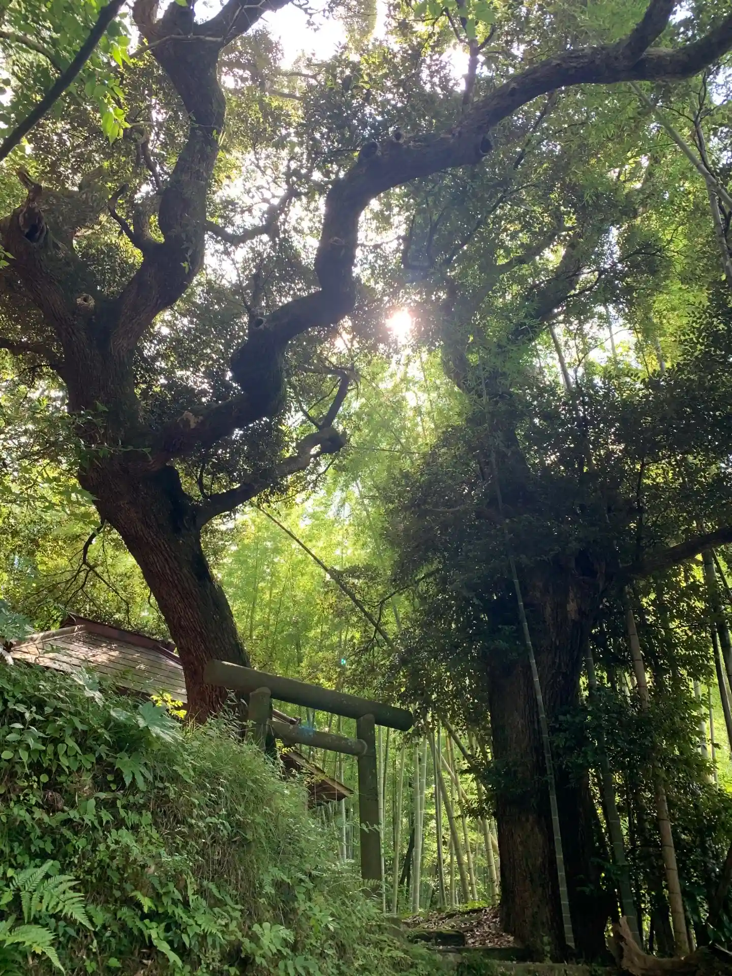 鳥居と社殿の間に堂々と大き…