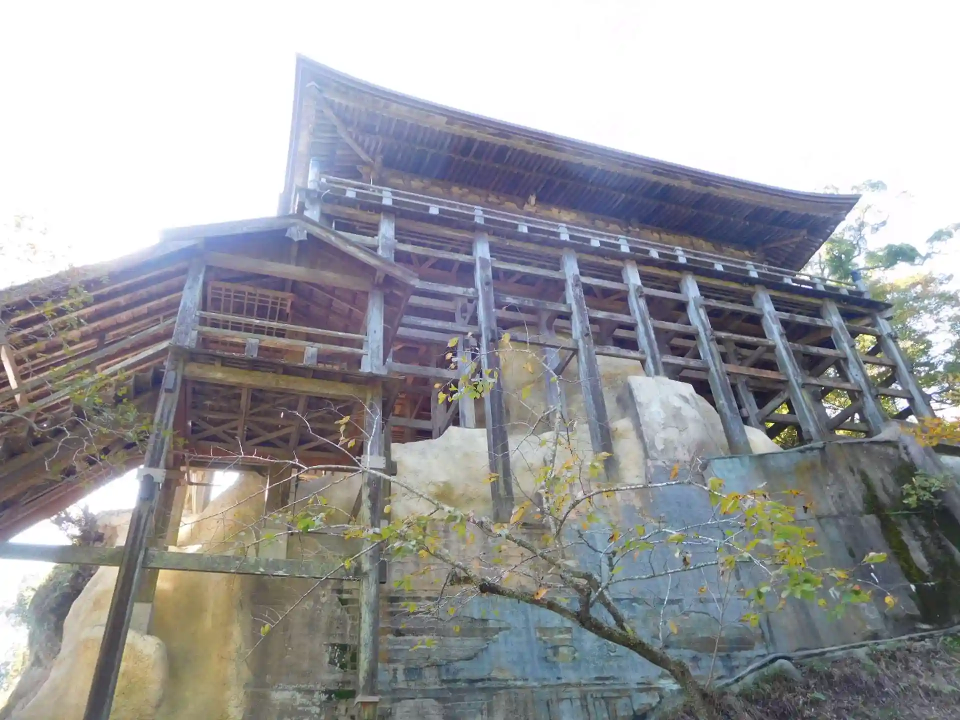 駐車場からしばらく階段を上ったところに二天門が見え、そこをくぐると本堂です。岩の上に本堂が建っていています。国指定重要文化財とのこと。本堂に上がるにも急な階段を上ることになります。高いところからの眺めはいいですね。