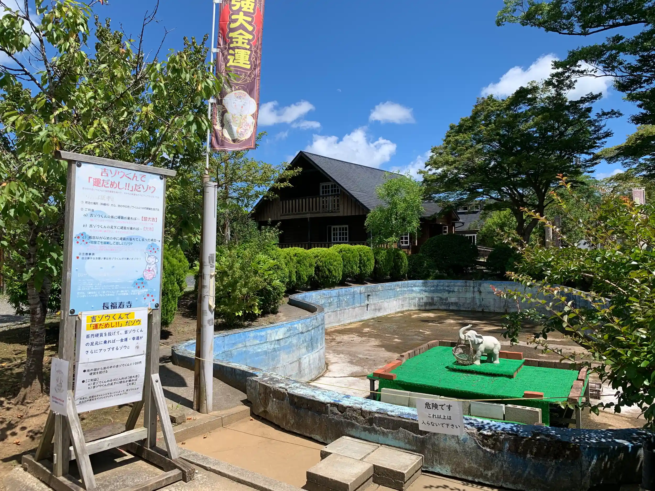 「日本一宝くじが当たる寺」といわれる長福寿寺の境内は金運のテーマパークのようになっており、中でも幸せを呼ぶゾウが大変な人気です。1200年以上の歴史を持つ天皇の勅願寺で菊の御紋の使用が許されており、御朱印にも押されています。