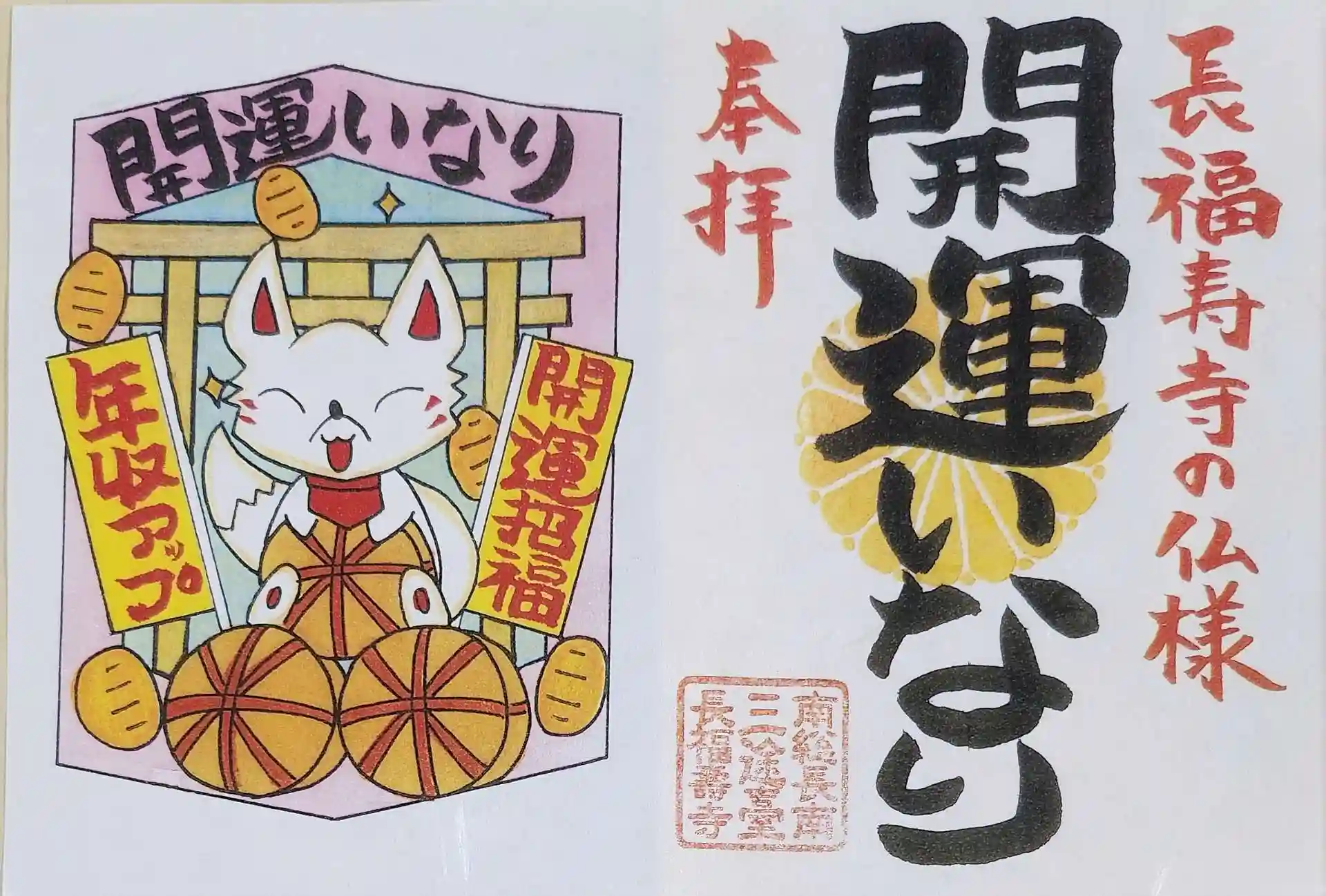 開運の御朱印と、金の吉ゾウくんの宝くじ入れを買いました。