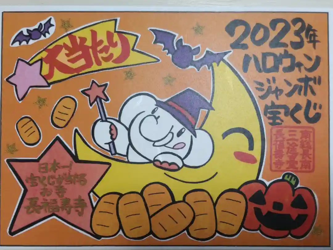 ハロウィンジャンボ宝くじ当選。吉ゾウくん、横断幕、大判小判、かぼちゃのおばけの絵