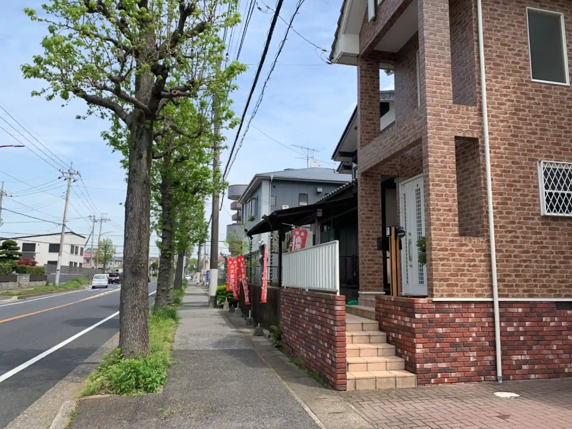 道端の民家の間に建っています。