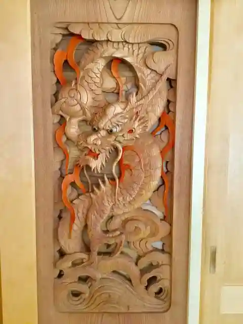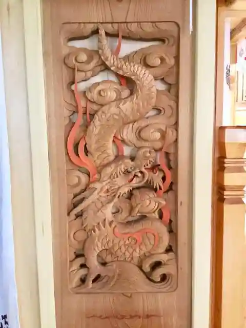 現在の拝殿は昭和三十九年の再建、平成八年には翼殿が増築されました。その時、拝殿の天井に四季の絵を始めとする絵画が奉納されました。