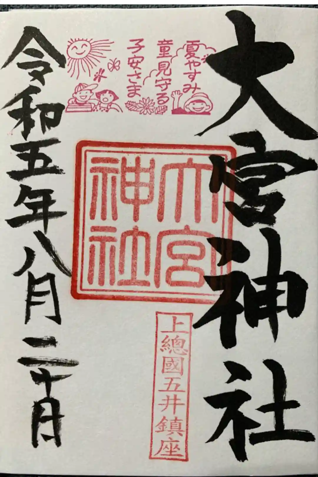 8月の月替り御朱印(8月のお題は「夏やすみ」、300円)